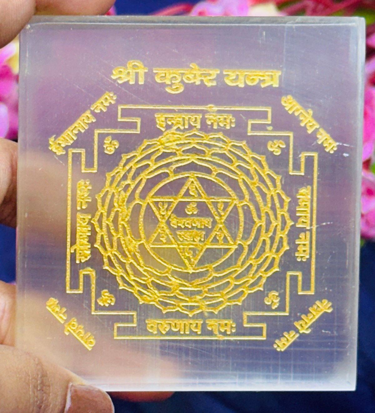 Premium Natural Selenite Maha Kuber Yantra is a sacred and potent talisman made by artisans to attract fortune and prosperity. Its purity is its greatest attribute, which it shares with nature’s pure selenite. This yantra emits positive vibrations. It also aids in inviting wealth.