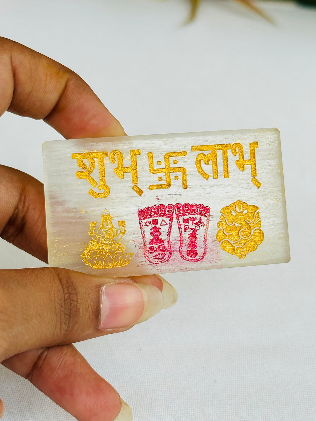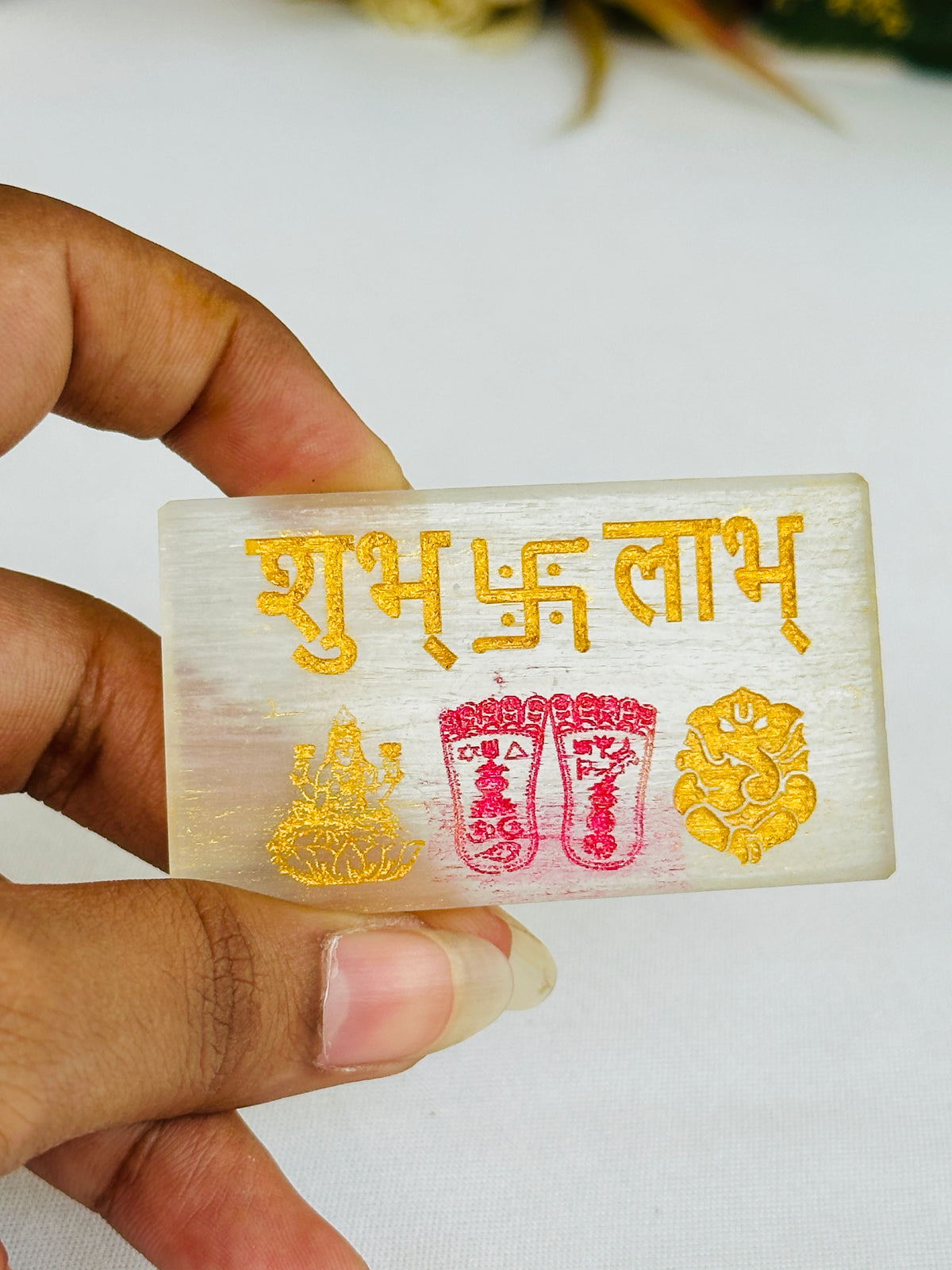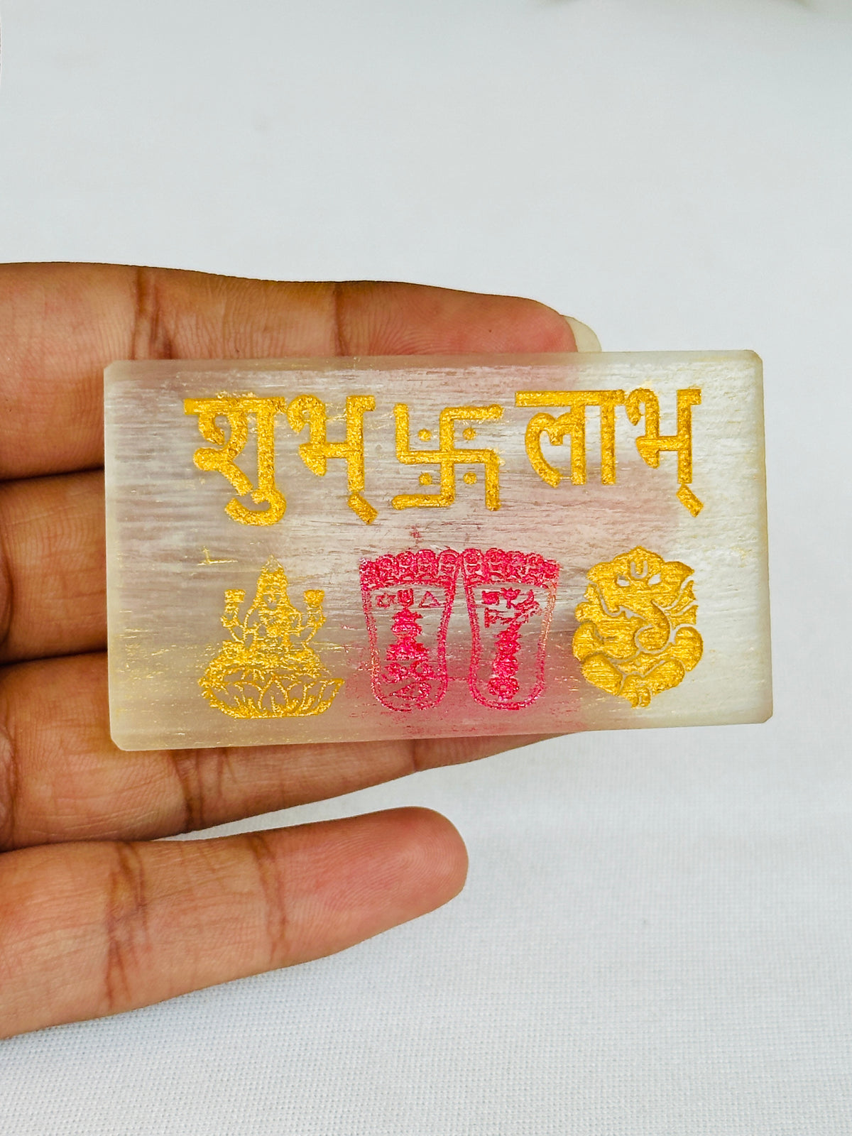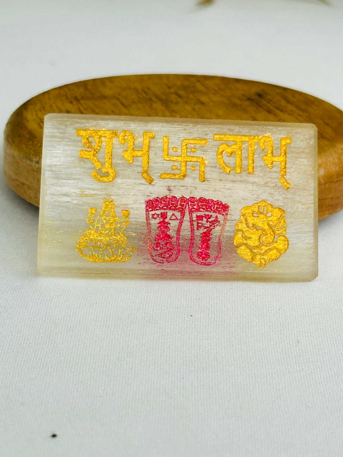 The Shubh Labh Selenite Plate is an ideal choice for anyone looking to invite wealth and positive energy into their life!