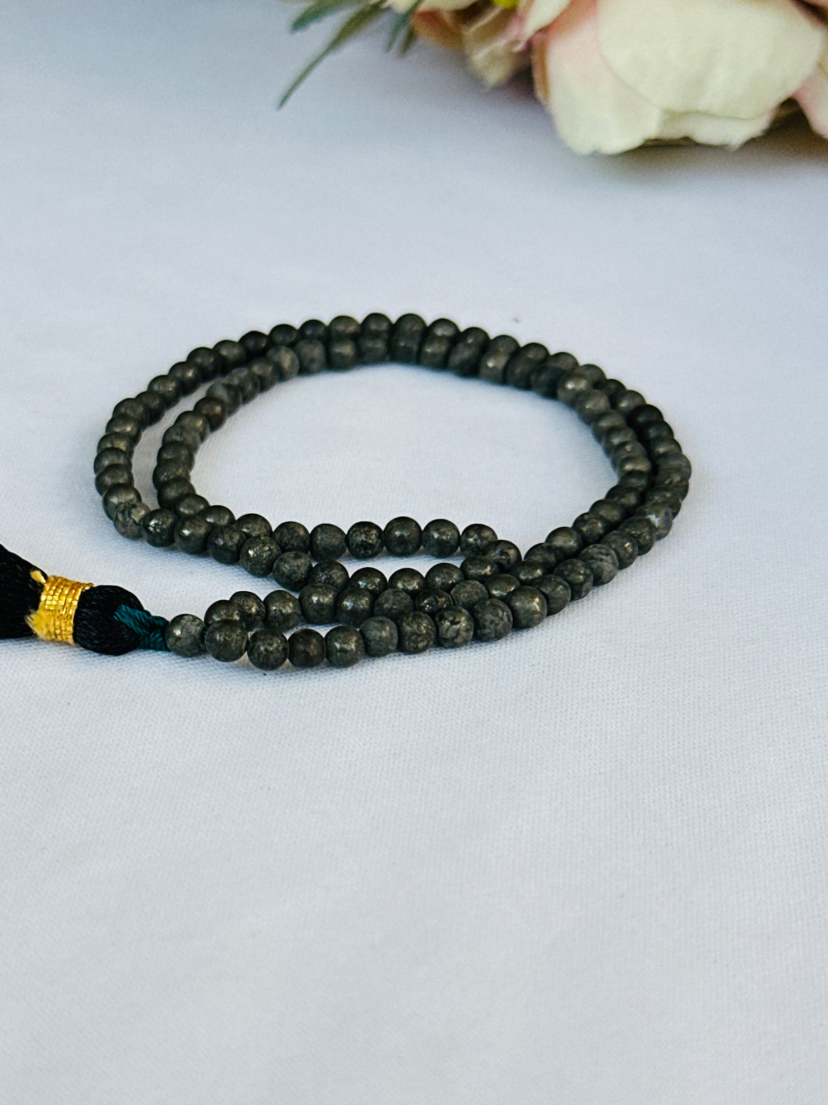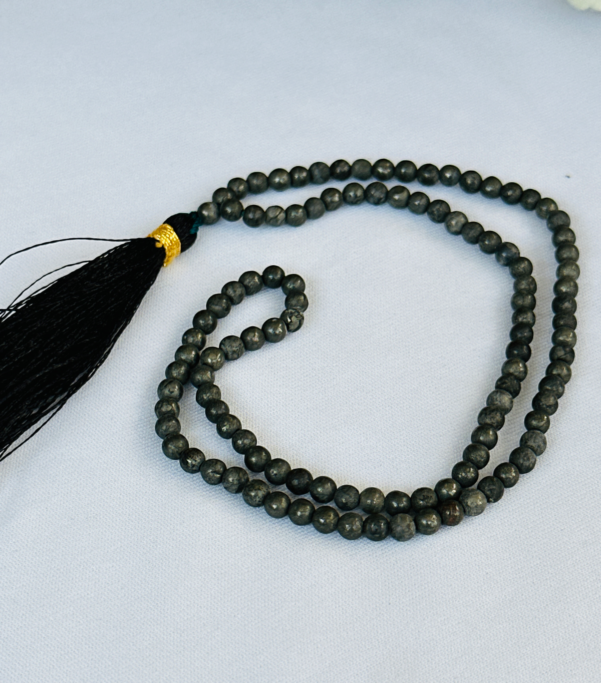 This mala not only boosts your confidence in business or job-related endeavors but also helps in manifesting your ambitions. Whether you're looking to build a prosperous career, gain fame, or enhance your reputation, this pyrite mala is designed to attract the right opportunities and success.
