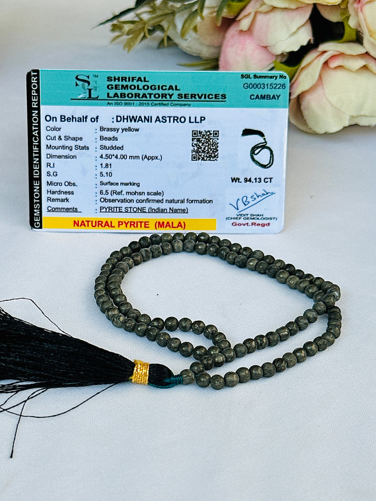 The Attract Money, Success, Name & Fame: Pyrite Mala - Abhimantrit & Certified