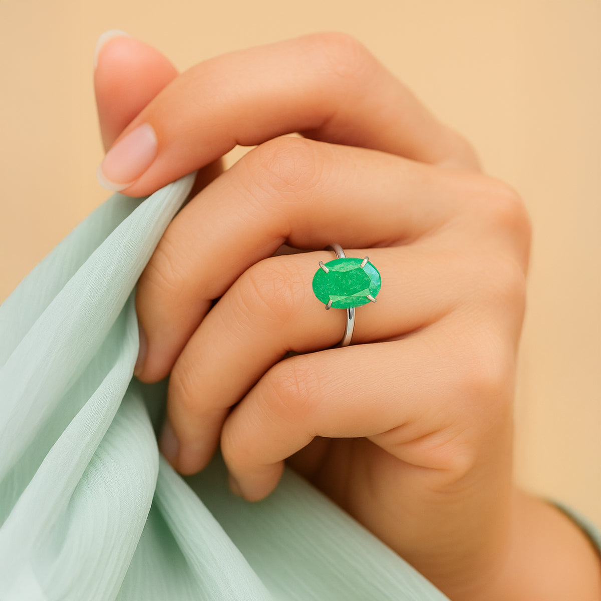 The Promotes Wealth Attraction & Money Growth: Green Aventurine Ring - Abhimantrit & Certified is a beautifully crafted piece designed to enhance your financial prospects and foster abundance in your life. Made from genuine green aventurine, this ring is renowned for its powerful properties that attract prosperity and success.