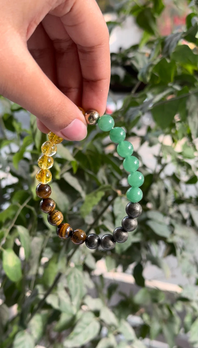 Boost your financial and spiritual well-being with the Wealth & Prosperity Combo of 3, a thoughtfully curated set designed to attract abundance and maintain balance. This powerful combination includes the Money Magnet Pro Bracelet, featuring Aventurine, Citrine, Tiger Eye, and Pyrite to enhance prosperity and focus. The Kuber Yantra, energized with sacred mantras, supports effective debt management and encourages disciplined saving. The Seven Chakra Pendant with Green Jade aligns your chakras, fostering complete healing and emotional harmony.