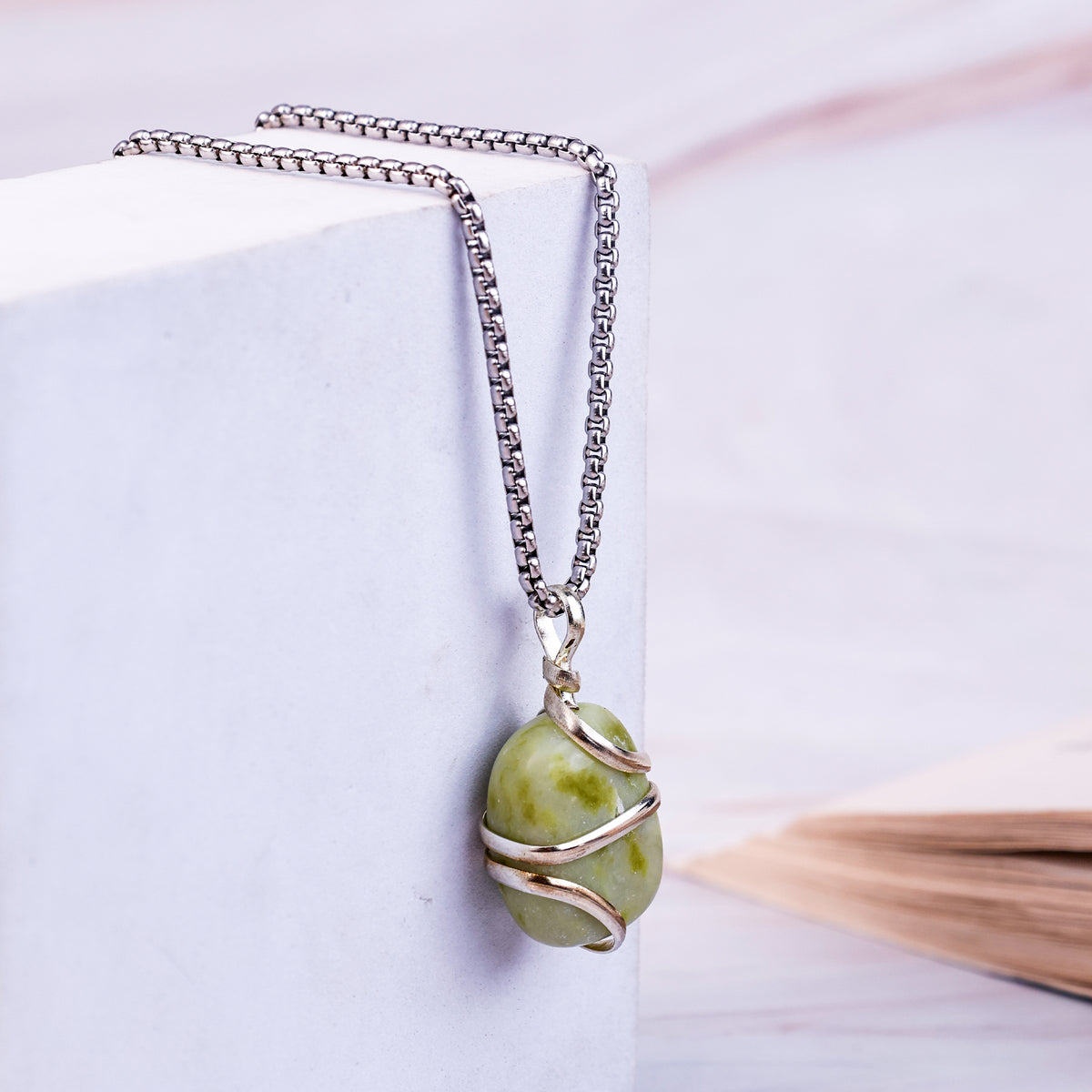 This Serpentine Wrapping Pendant is made of serpentine crystal, which has a lot of healing and spiritual powers to calm the mind, remove stress and harmonize the energies of the body. Serpentine aids spiritual development, emotional balance and deep inner harmony.
