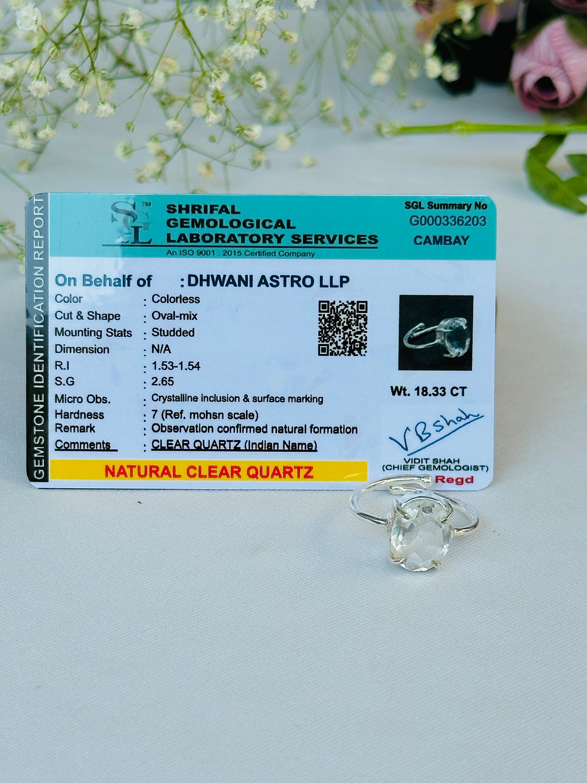 Removes Depression, Anger & Anxiety: Clear Quartz Ring - Abhimantrit & Certified
