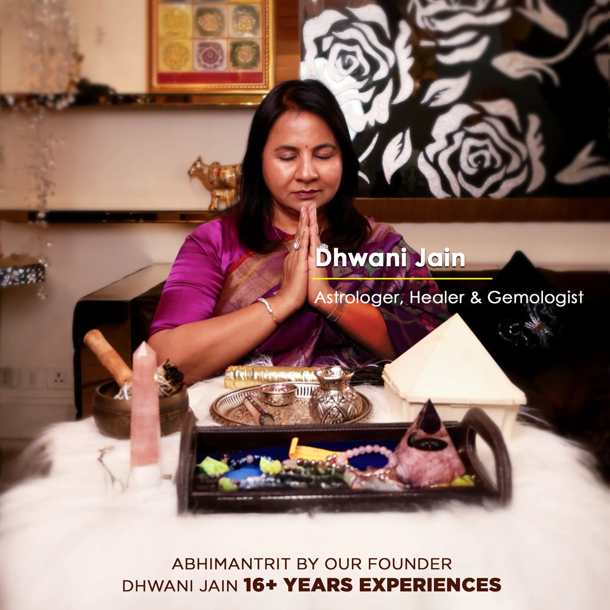Every product is personally Abhimantrit by Founder Dhwani Jain Ma’am with your Name and DOB (16+ yrs of Exp in Spiritual Healing, Astrology & Gemologist).