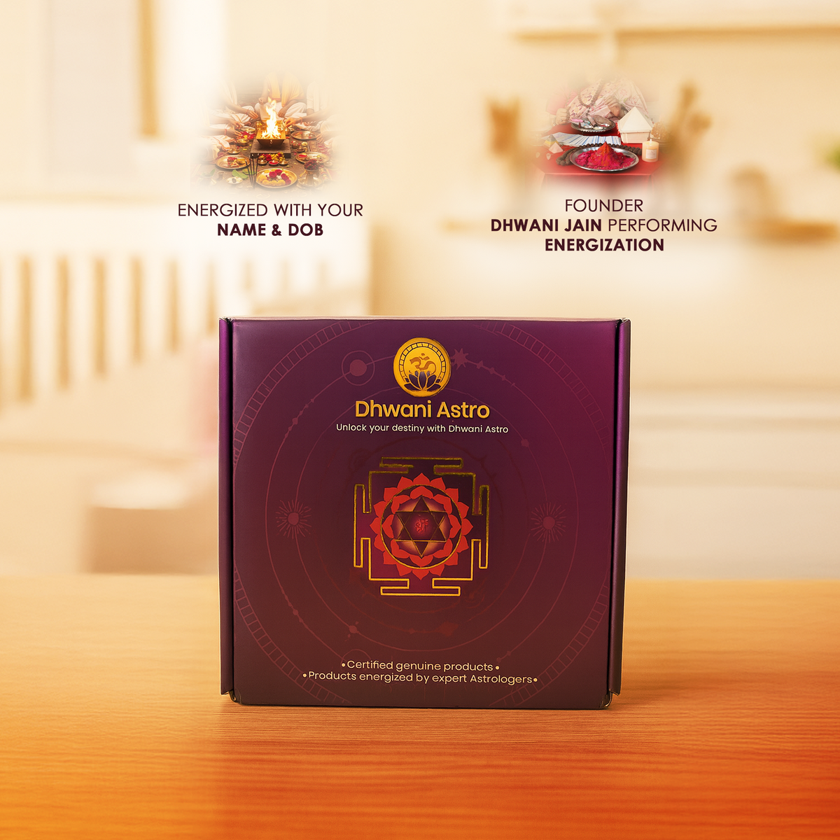 At Dhwani Astro, we believe in providing a personalized experience for each customer. Once you make a purchase, we first confirm all your details to ensure accuracy. Our expert astrologer carefully cleanses your products and then energizes each product according to your specific information like Name, Gotra, and Date of Birth, ensuring it aligns with your spiritual needs.