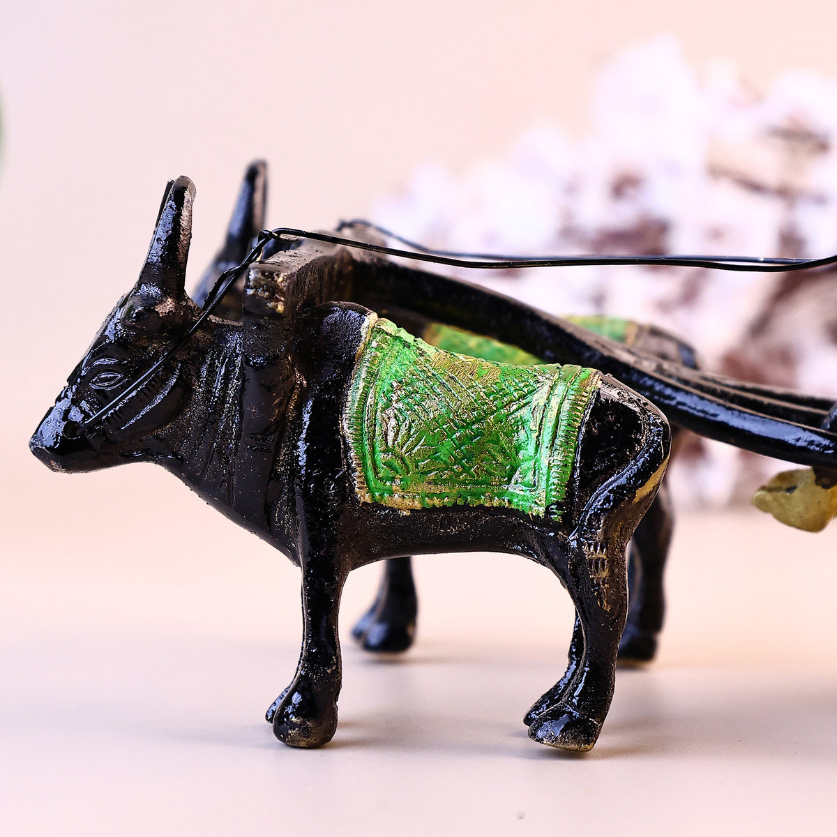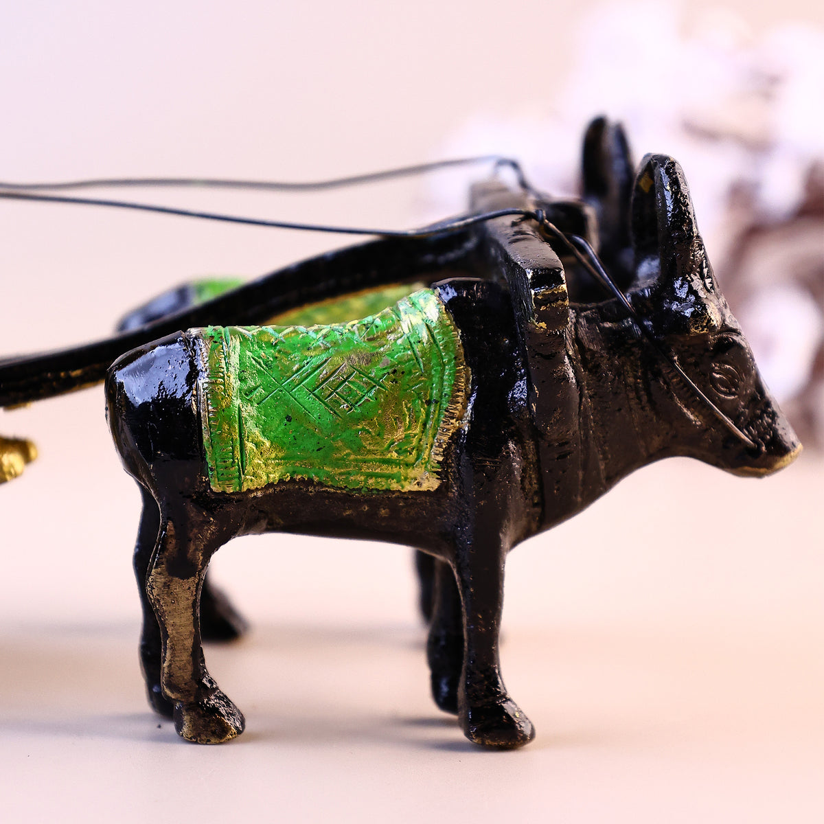 The Brass Bullock Cart brings steady energy peace and simple joy into your life. Keep it near to feel calm stay strong and move forward with blessings every day.