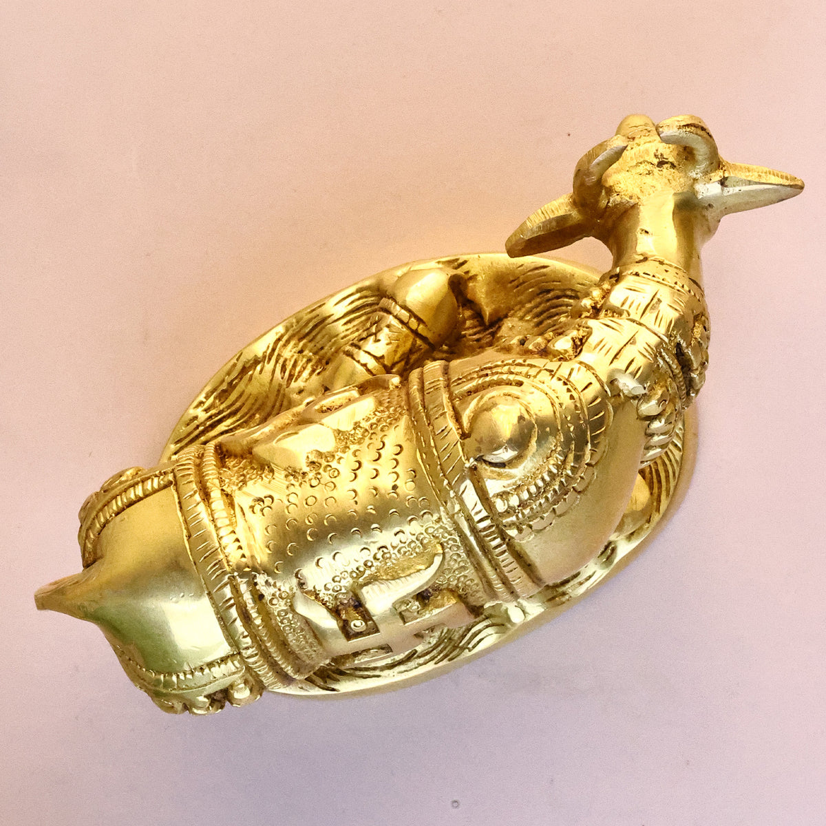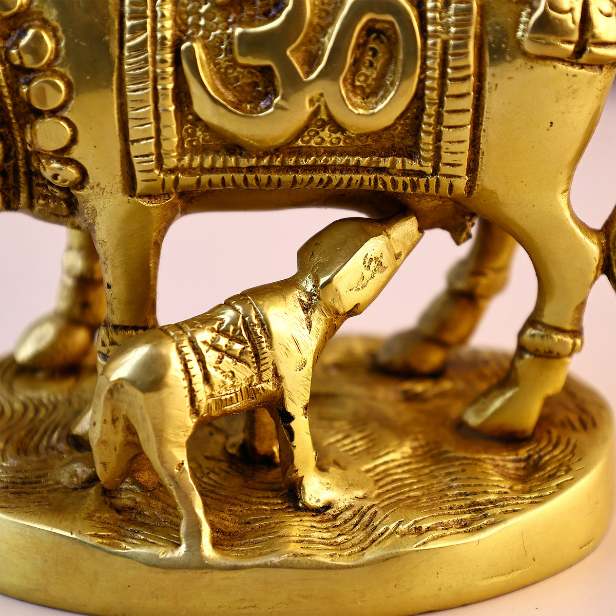 Brass Kaam Dhenu Cow with Om and Swastik - Abhimantrit