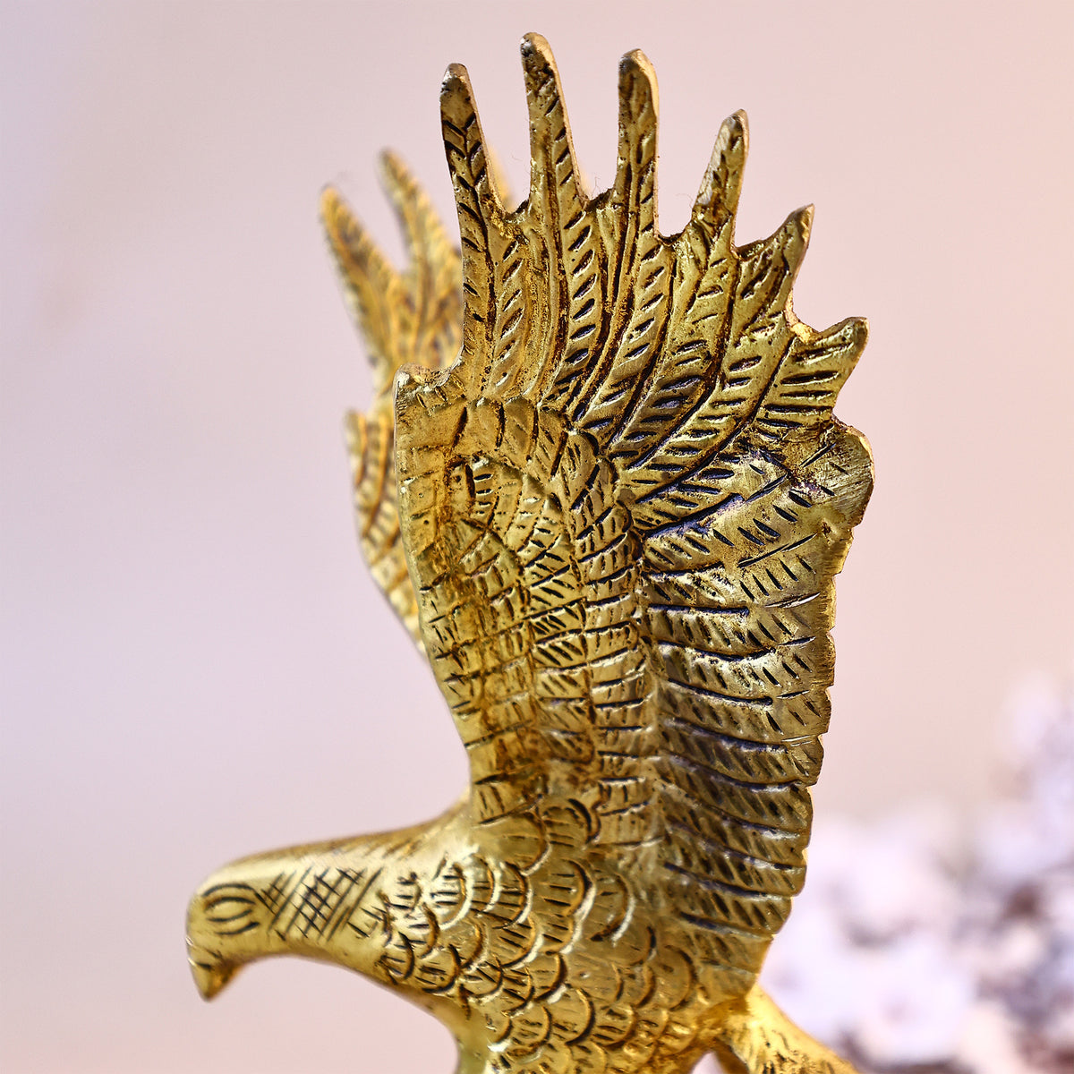 Brass Eagle Statue - Abhimantrit is a strong symbol of power vision and spiritual strength. The eagle is known to bring focus clarity and courage to overcome challenges. When you keep this brass idol in your home or office it brings a feeling of confidence and sharp energy. It is abhimantrit by our Pandit Ji with your name and gotra using pure Vedic mantras for special blessings.