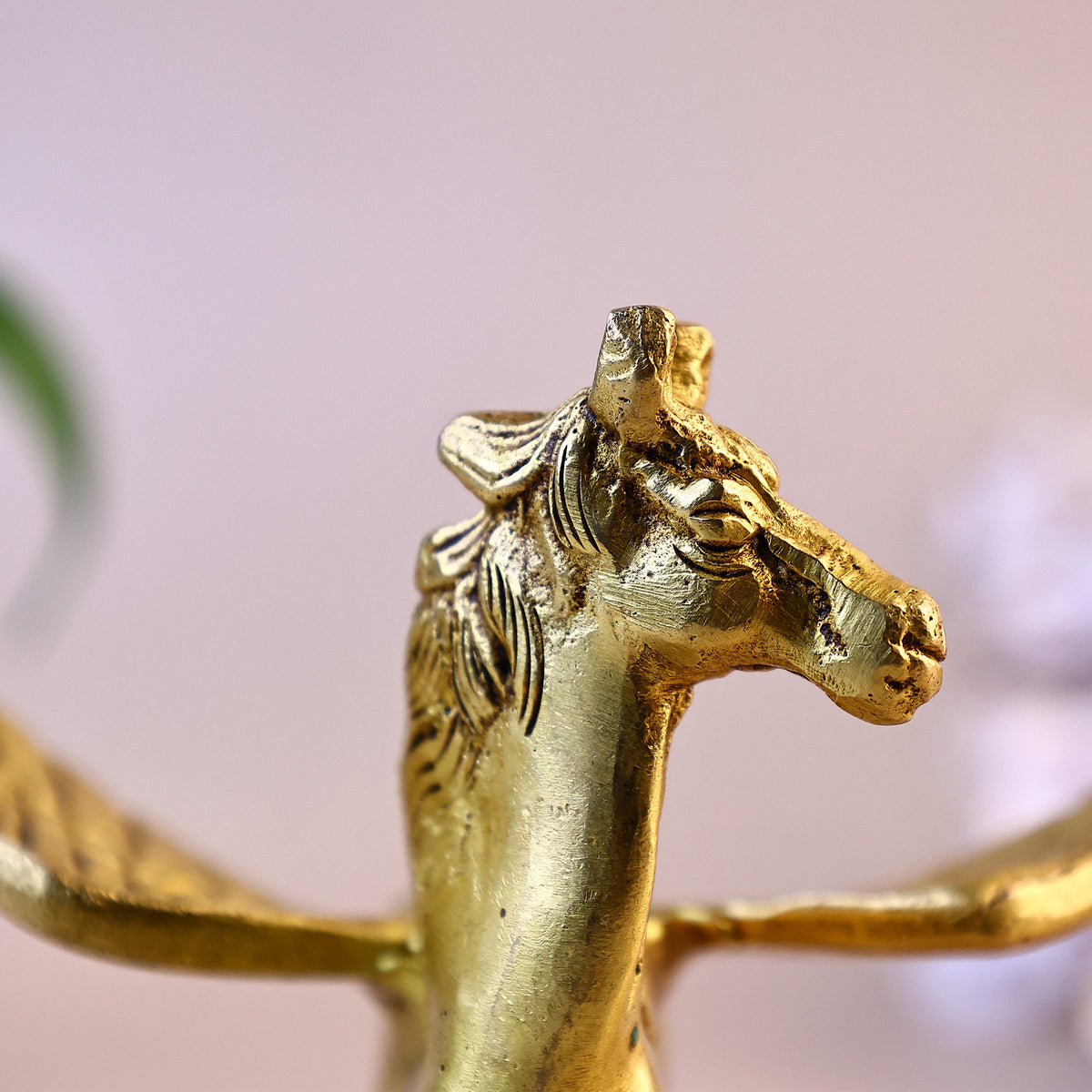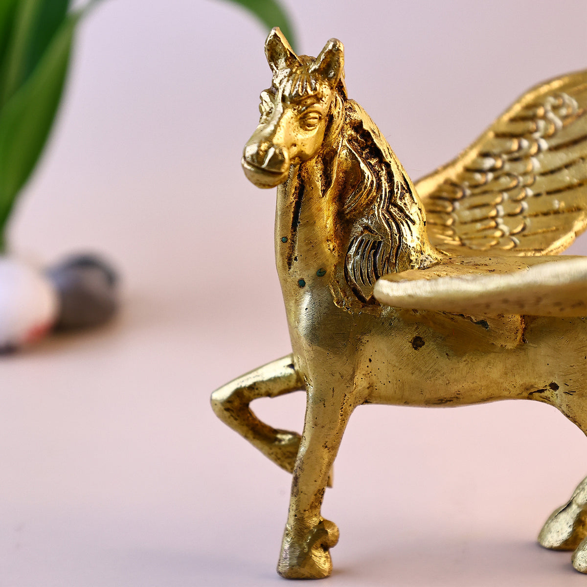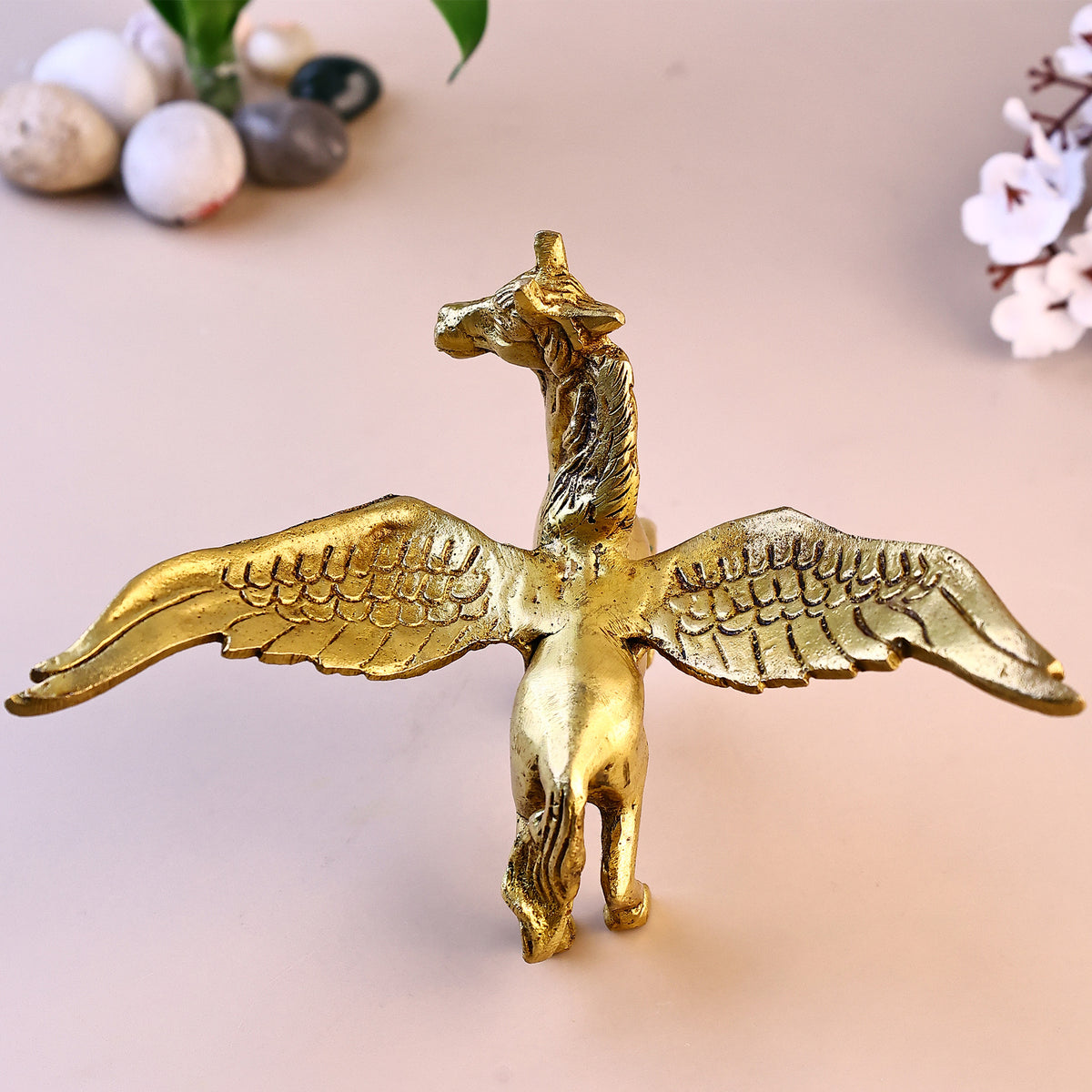 Brass Flying Horse - Abhimantrit is a sign of freedom speed and strong energy. The flying horse shows the power to rise above problems and move ahead in life. When you keep this brass idol in your home or office it brings new ideas success and fresh energy. It is abhimantrit by our Pandit Ji with your name and gotra using clean Vedic mantras for blessings and strength.