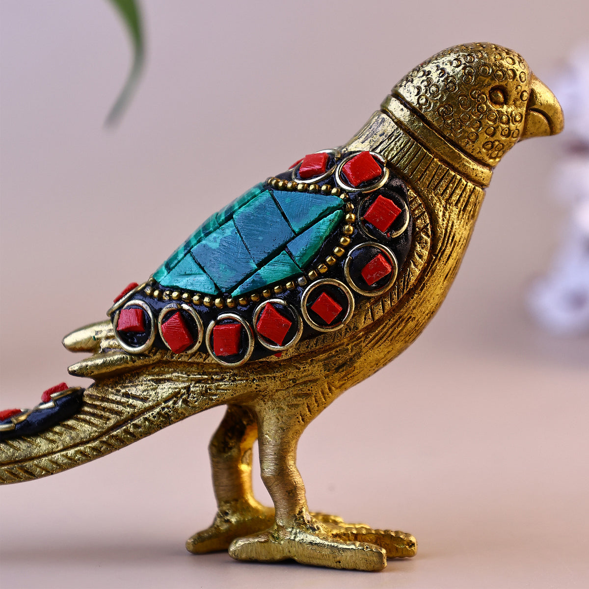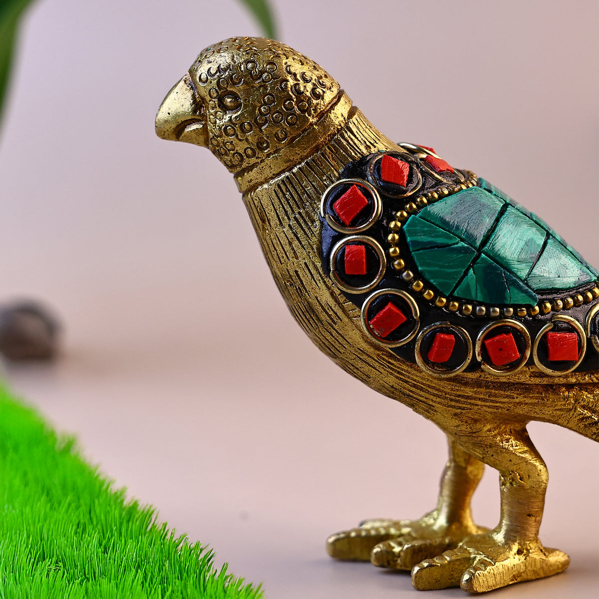 Brass Parrot Multi Colour with Stone Work - Abhimantrit