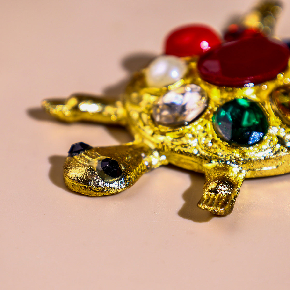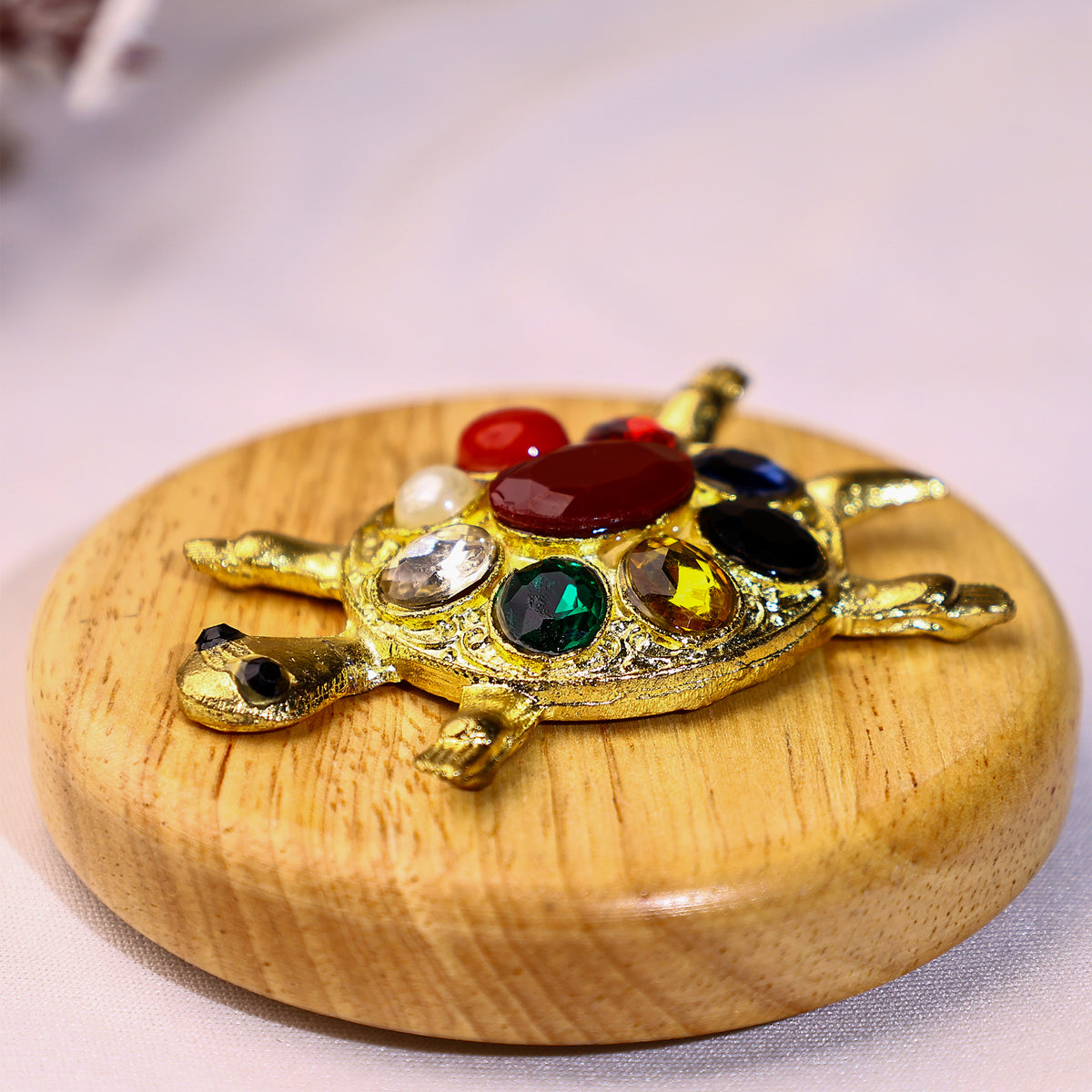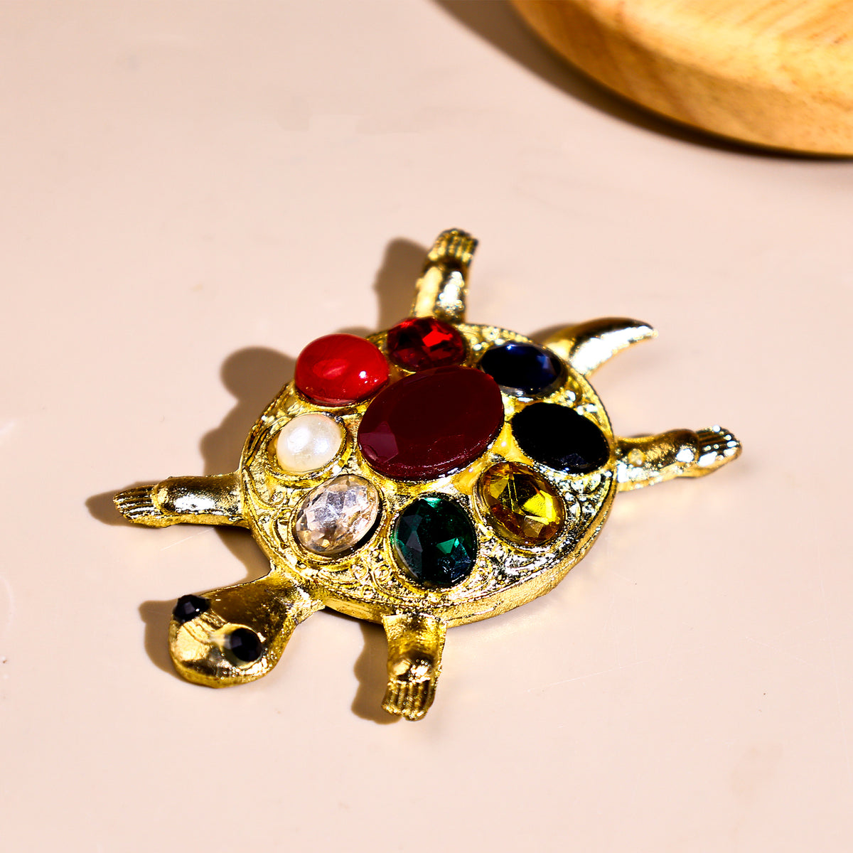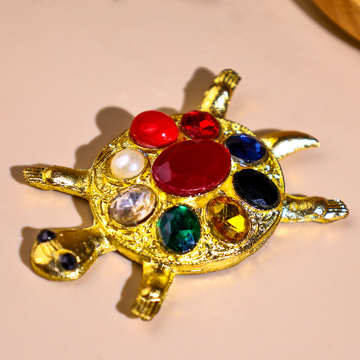This Navaratna Tortoise Idol is made to bring success, protection, and harmony in life. It carries the power of nine sacred gemstones (Navaratnas), each representing a planet, and the divine energy of the tortoise, which is known for stability, long life, and Vastu balance.