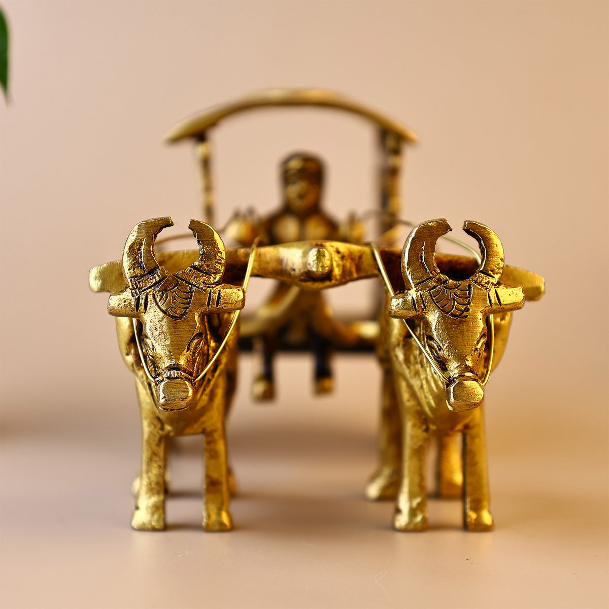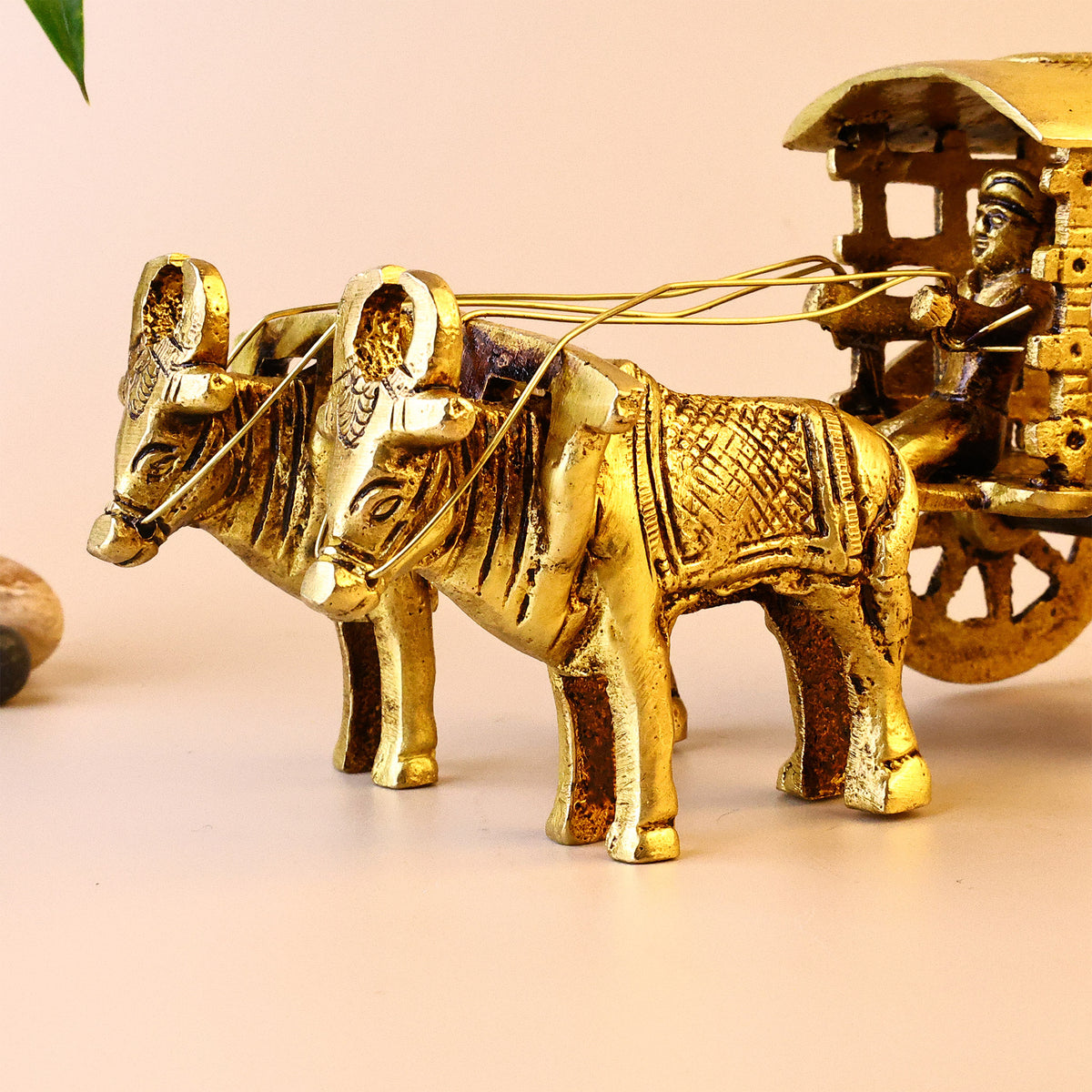 The Bullock Cart With Double Bull is a symbol of prosperity, hard work, and progress. Made from pure brass.