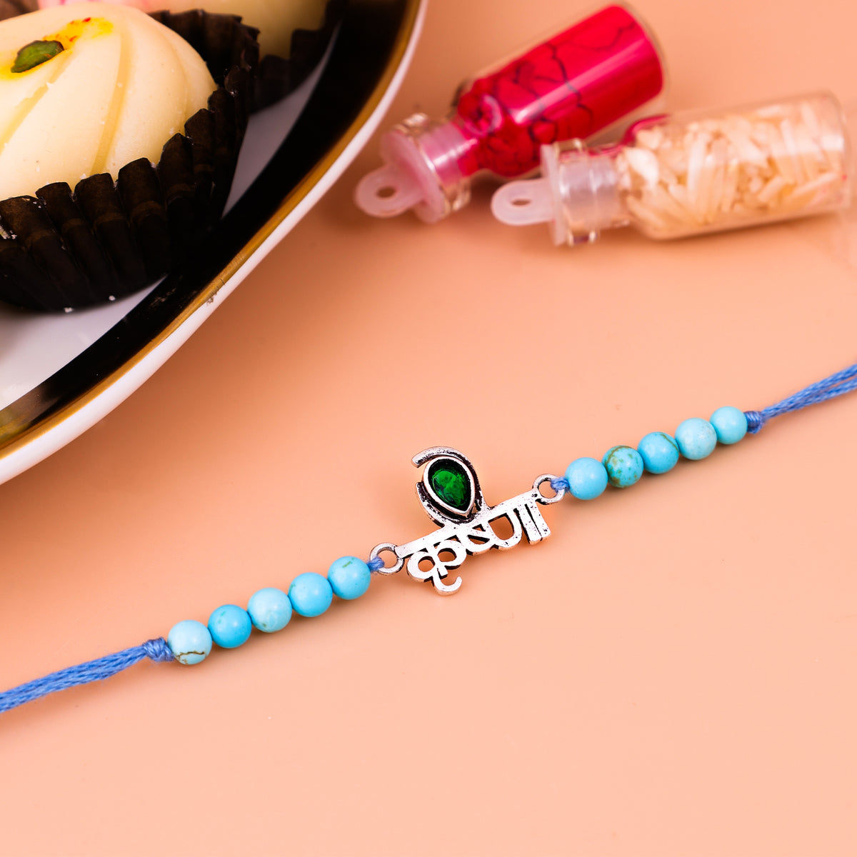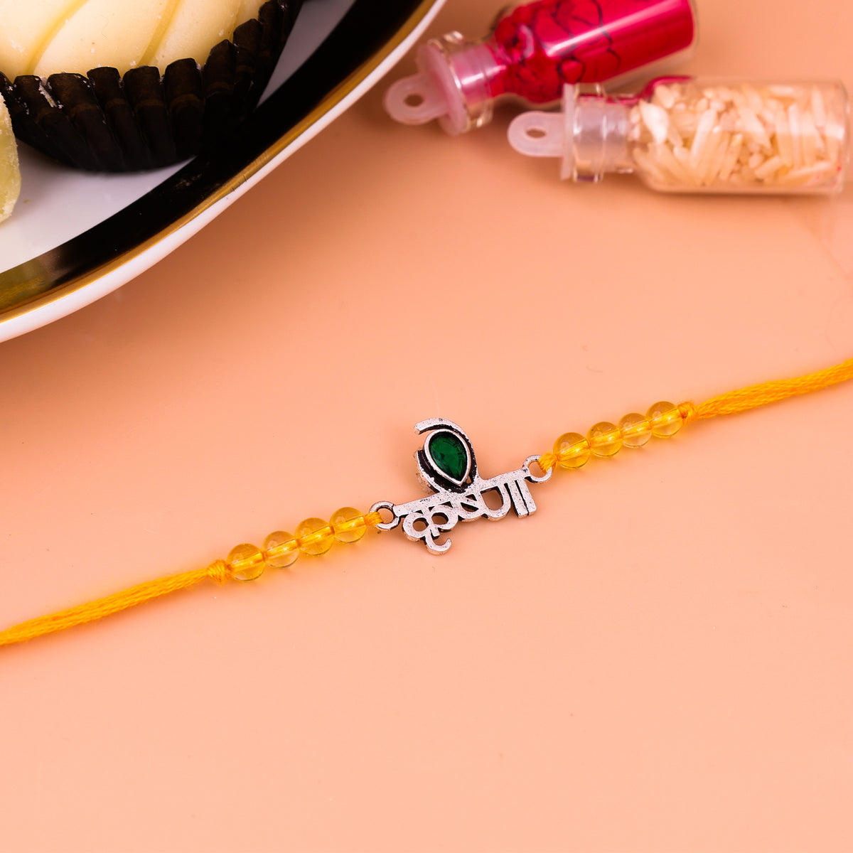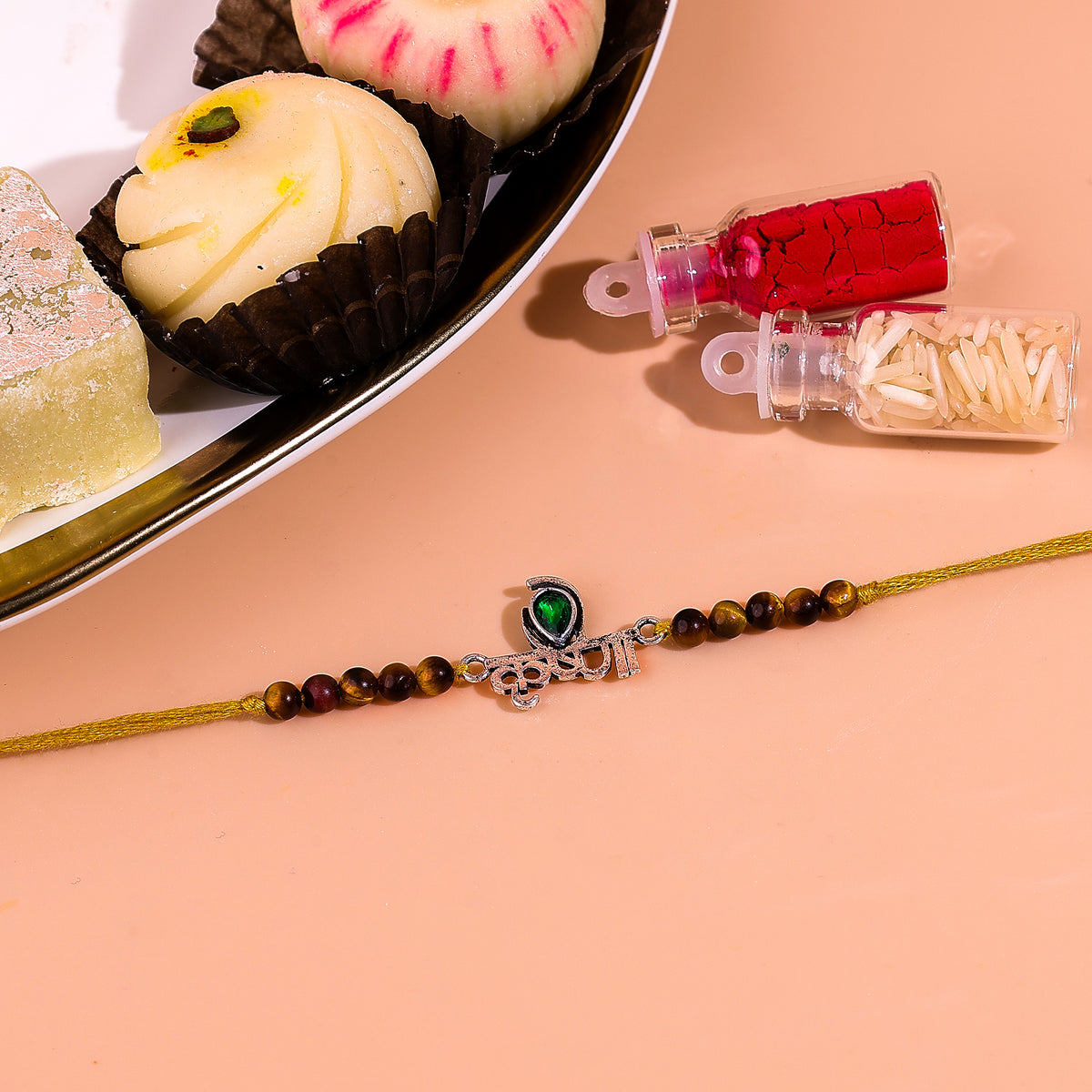 This Rakhi also balances planetary influences linked to relationships, love, and emotional healing. When tied by the sister, it becomes a divine bond that safeguards your brother and fills his life with positivity, wisdom, and success 🙏.