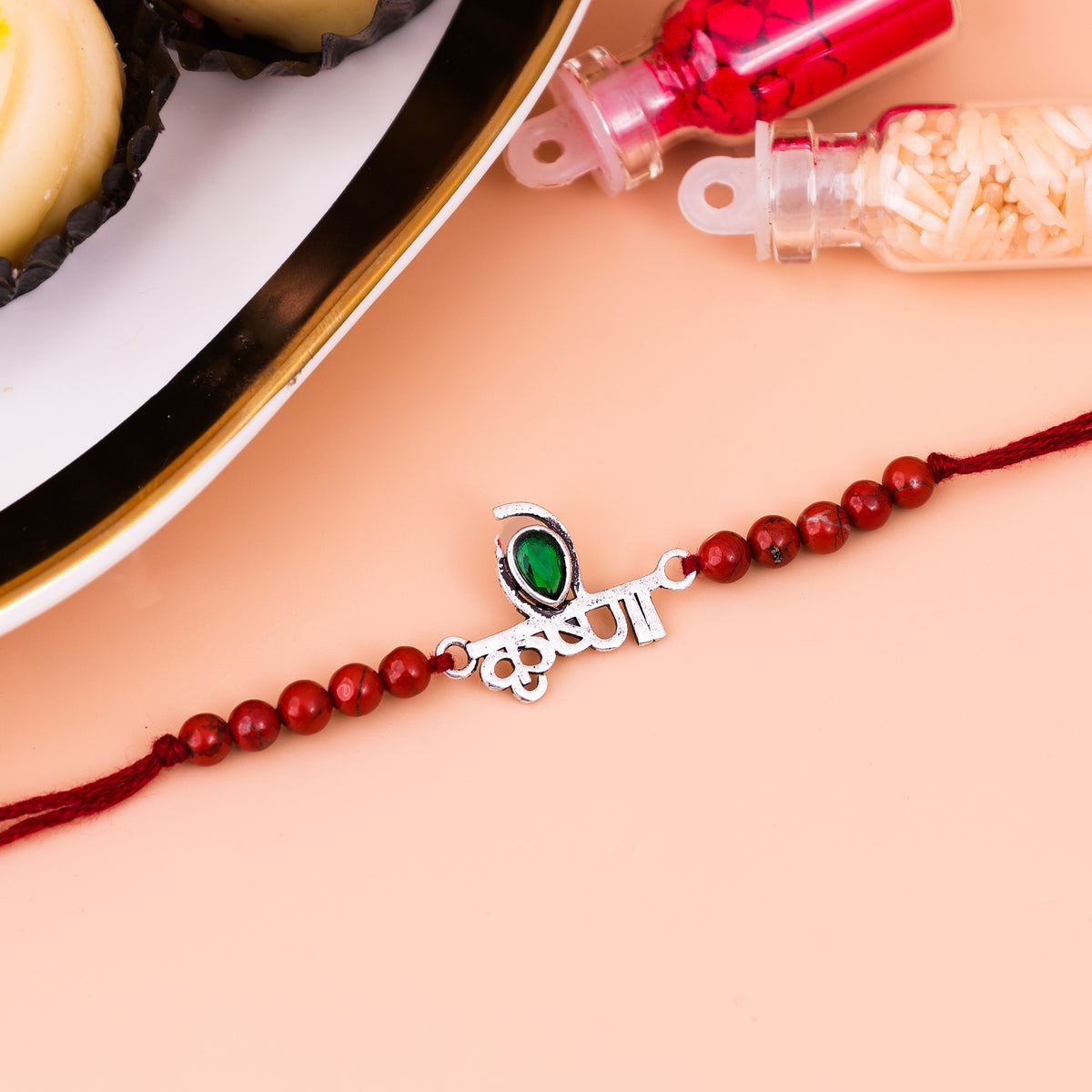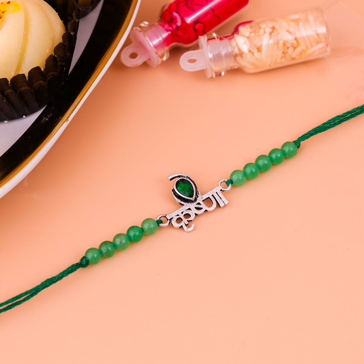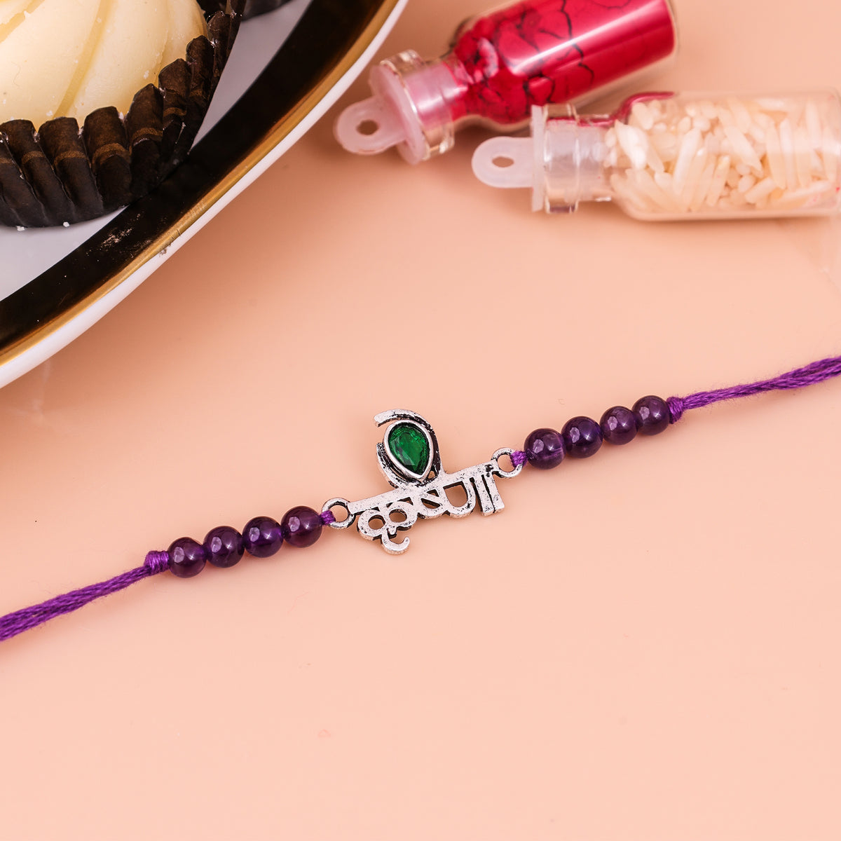 This Rakhi also balances planetary influences linked to relationships, love, and emotional healing. When tied by the sister, it becomes a divine bond that safeguards your brother and fills his life with positivity, wisdom, and success 🙏.