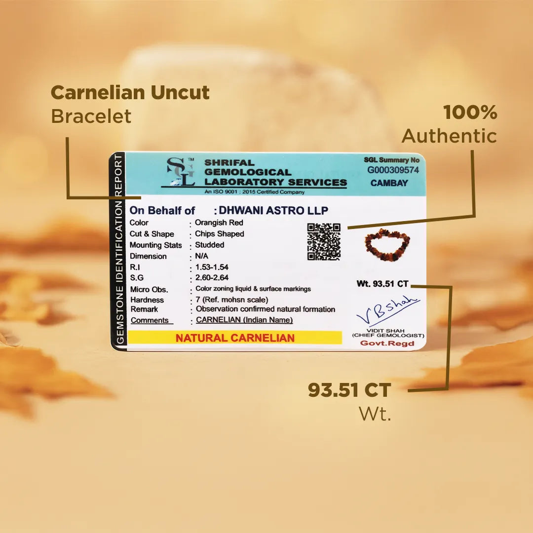 The Carnelian Uncut Bracelet - Abhimantrit & Certified brings energy, confidence, and strong motivation into your life. Carnelian is known as the stone of action—it boosts courage, increases focus, and helps you feel active and positive. The raw uncut crystal gives a powerful natural vibration that keeps your mind sharp and your spirit strong. 🔥🍊✨