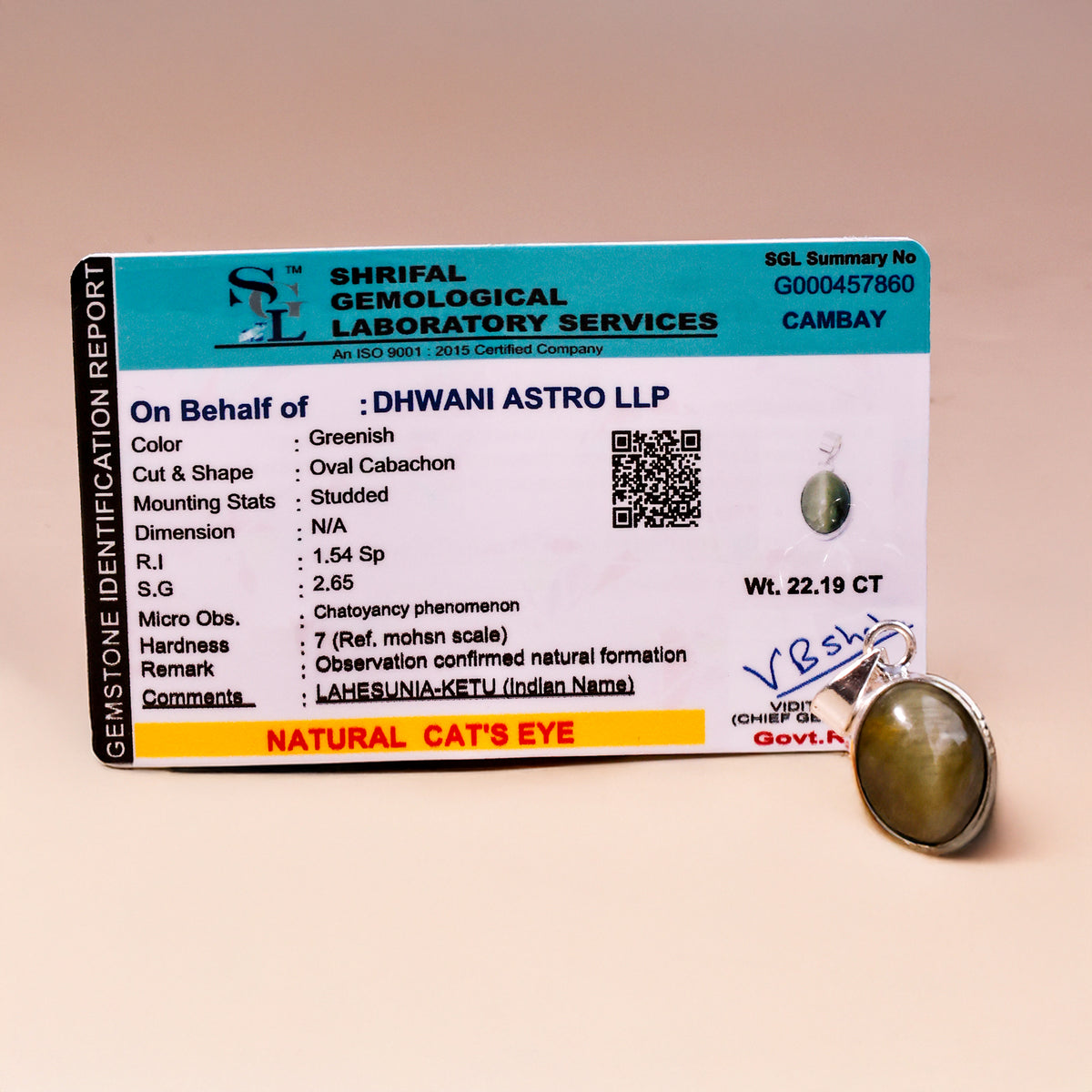 Cat Eye Stone Pendant - Abhimantrit & Certified