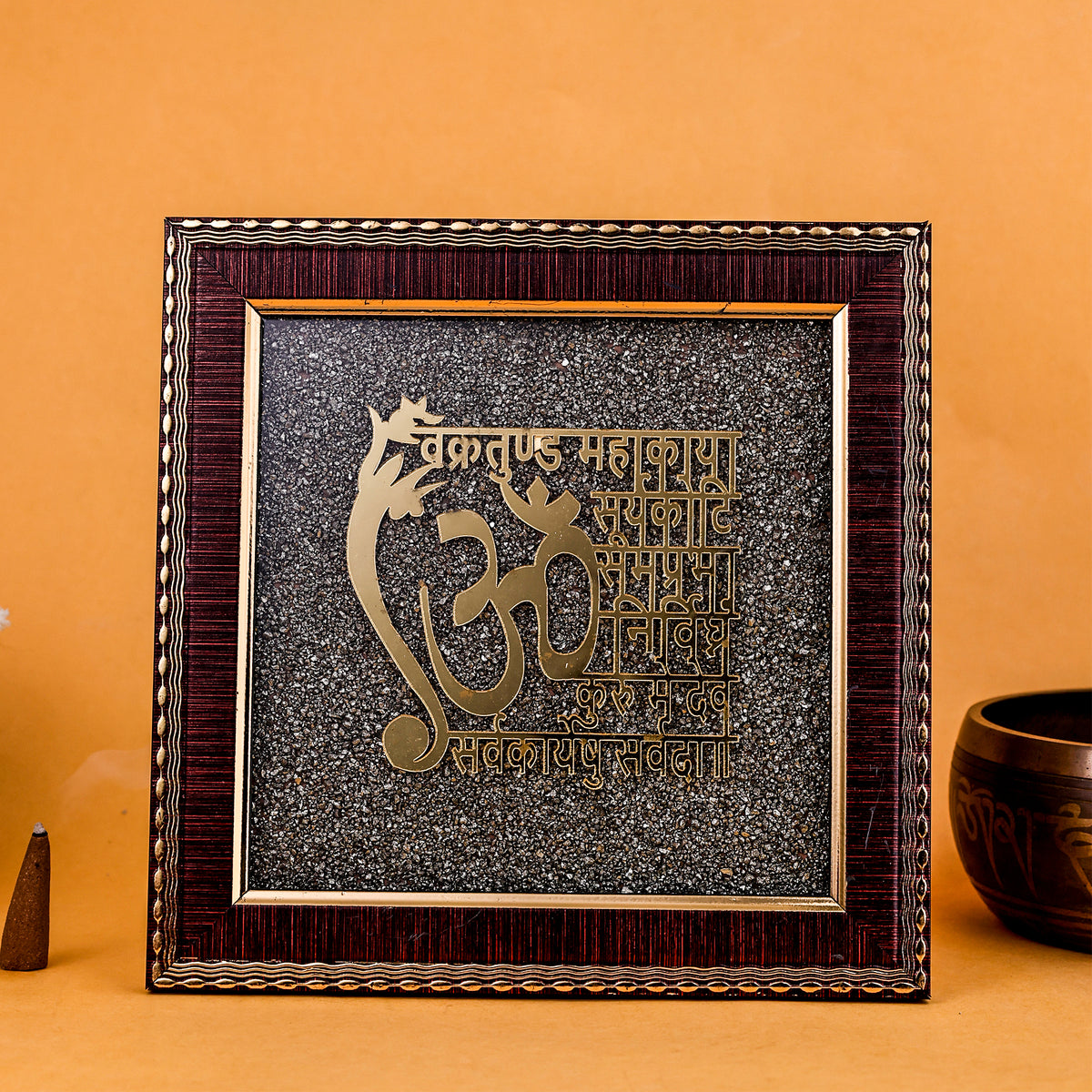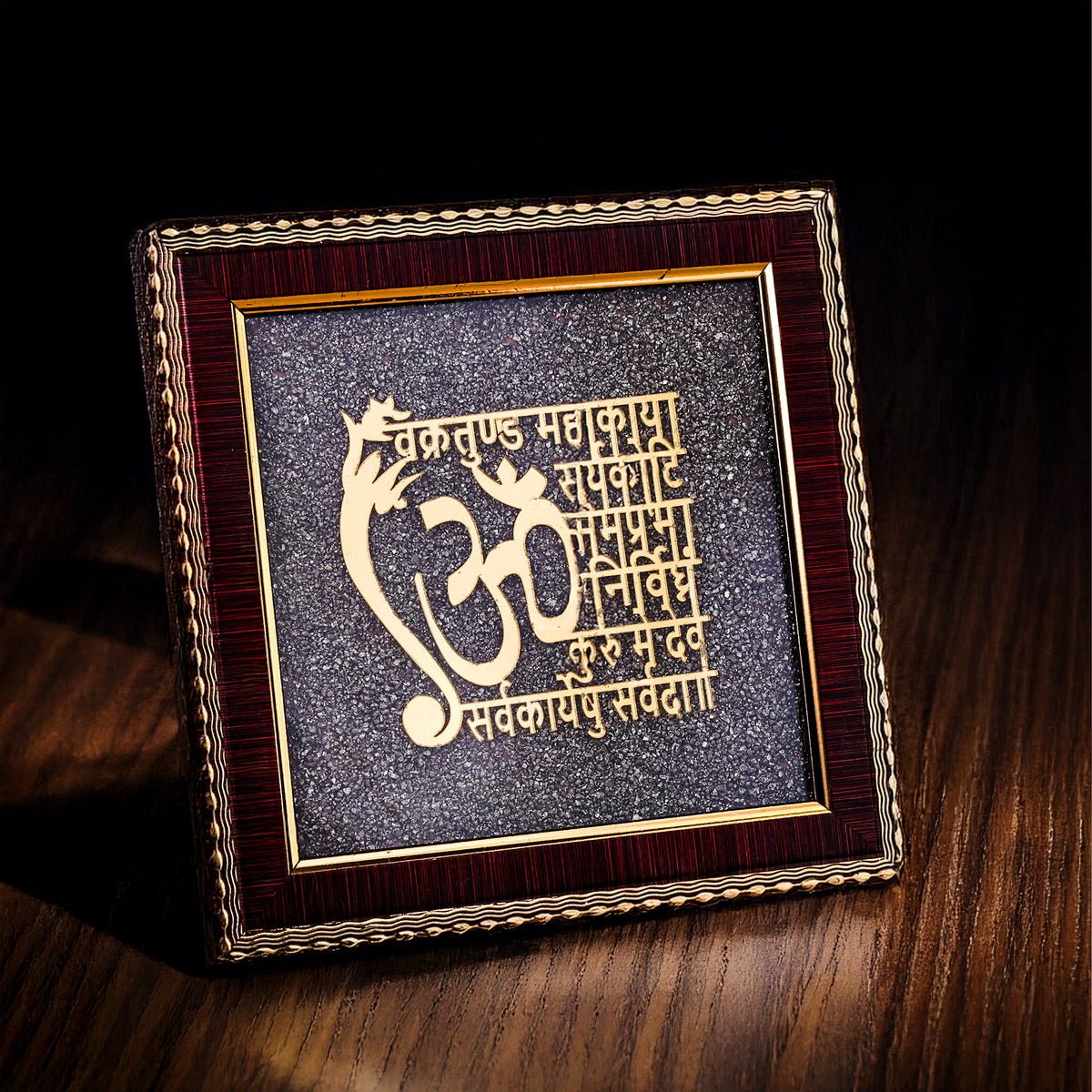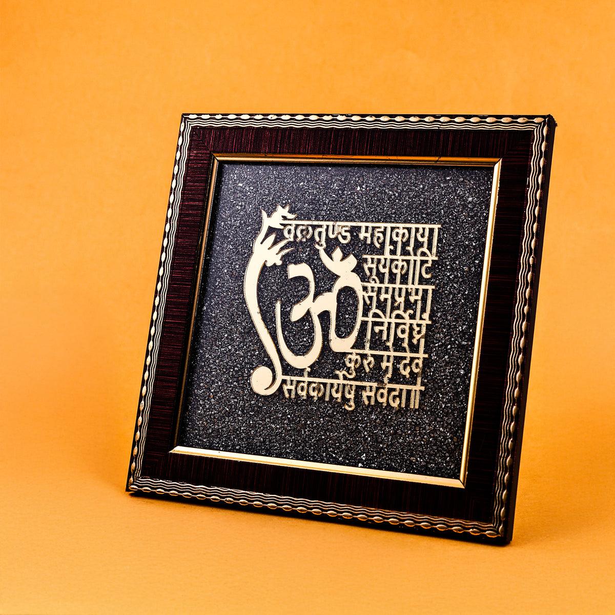 Ganesh Mantra Raw Pyrite Frame - Abhimantrit