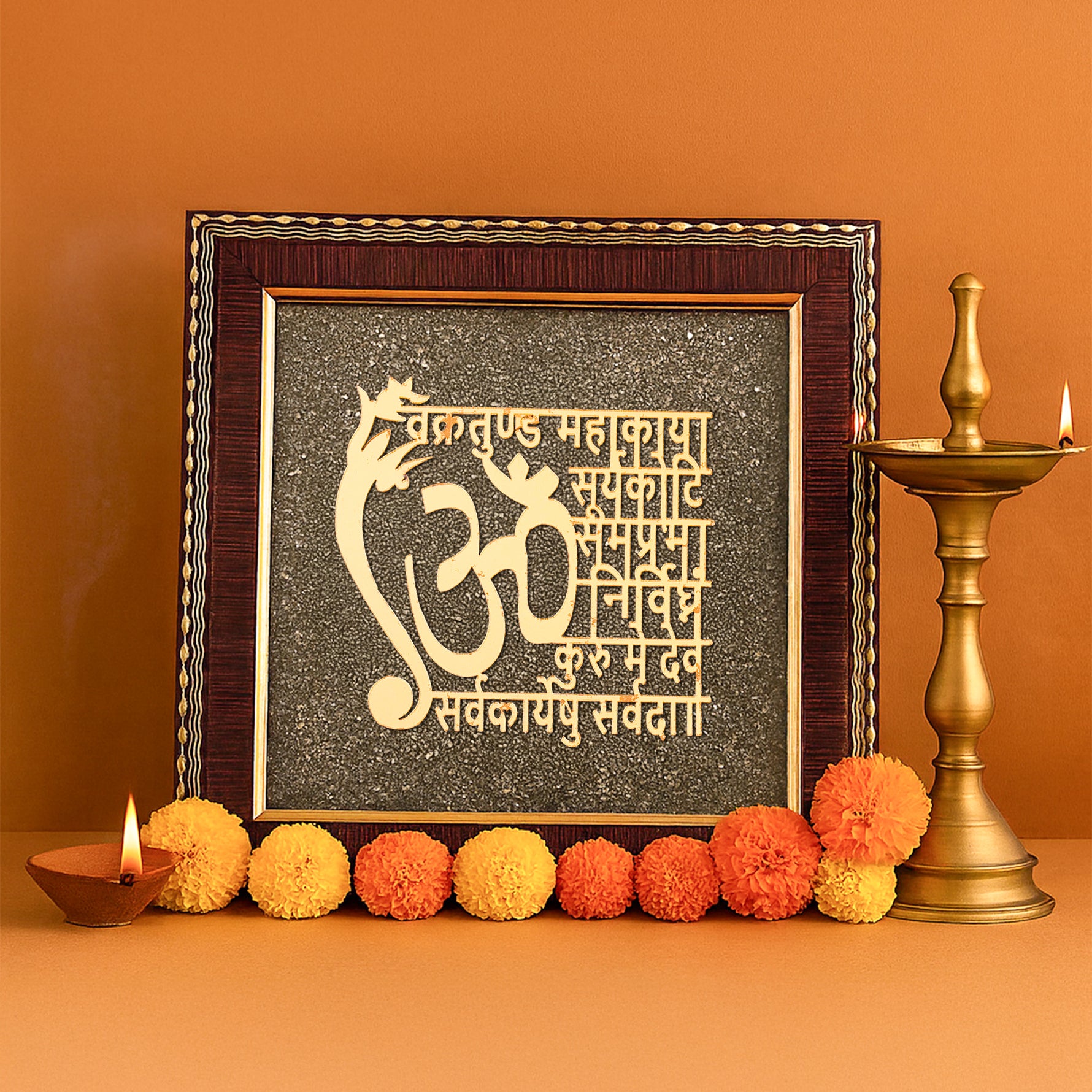 This is a beautiful and powerful frame with Lord Ganesha’s Mantra carved in a stylish design. Lord Ganesha is the God who removes problems and blesses us with wisdom, knowledge, happiness, and success. Whenever we start something new, we first remember Ganesha Ji so that there are no obstacles in our work.