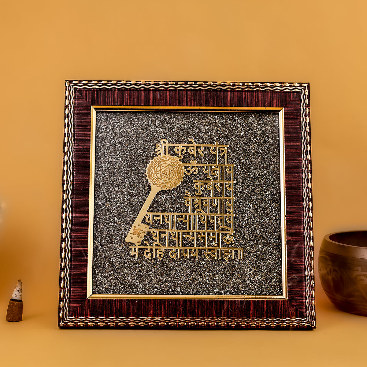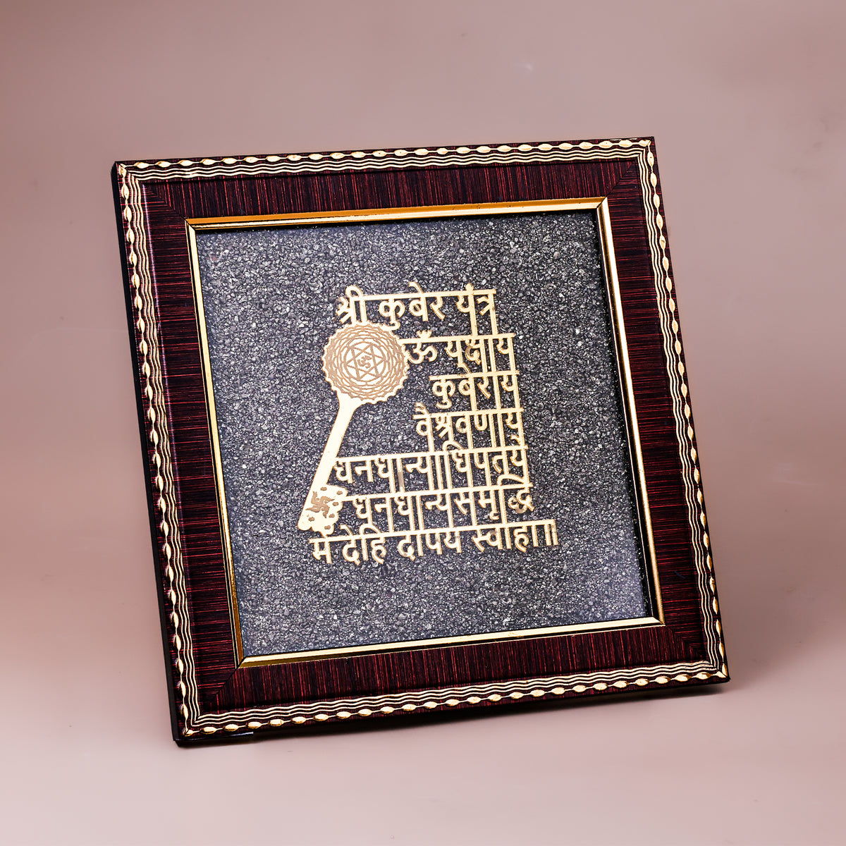 Shree Kuber Mantra And Yantra Raw Pyrite Frame - Abhimantrit