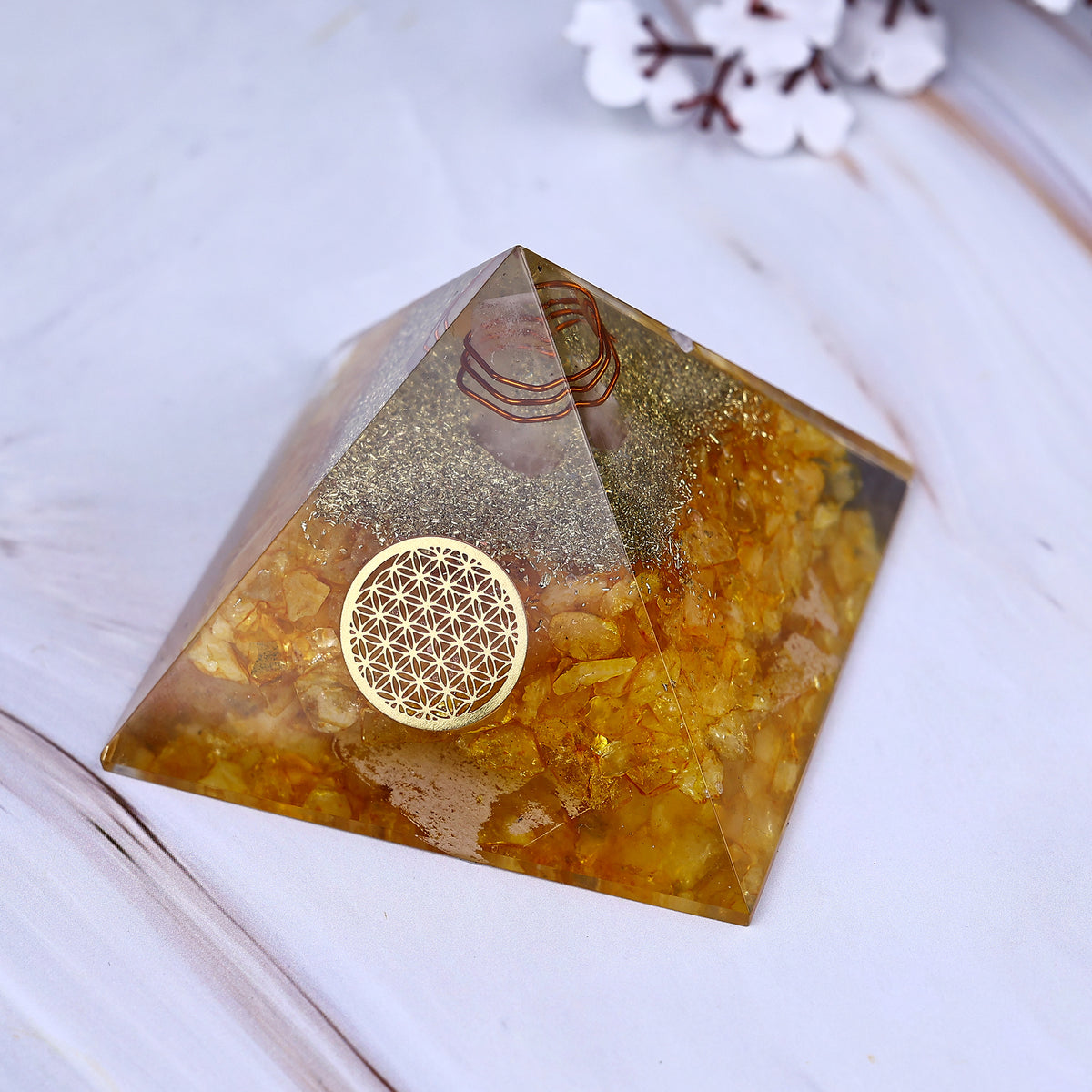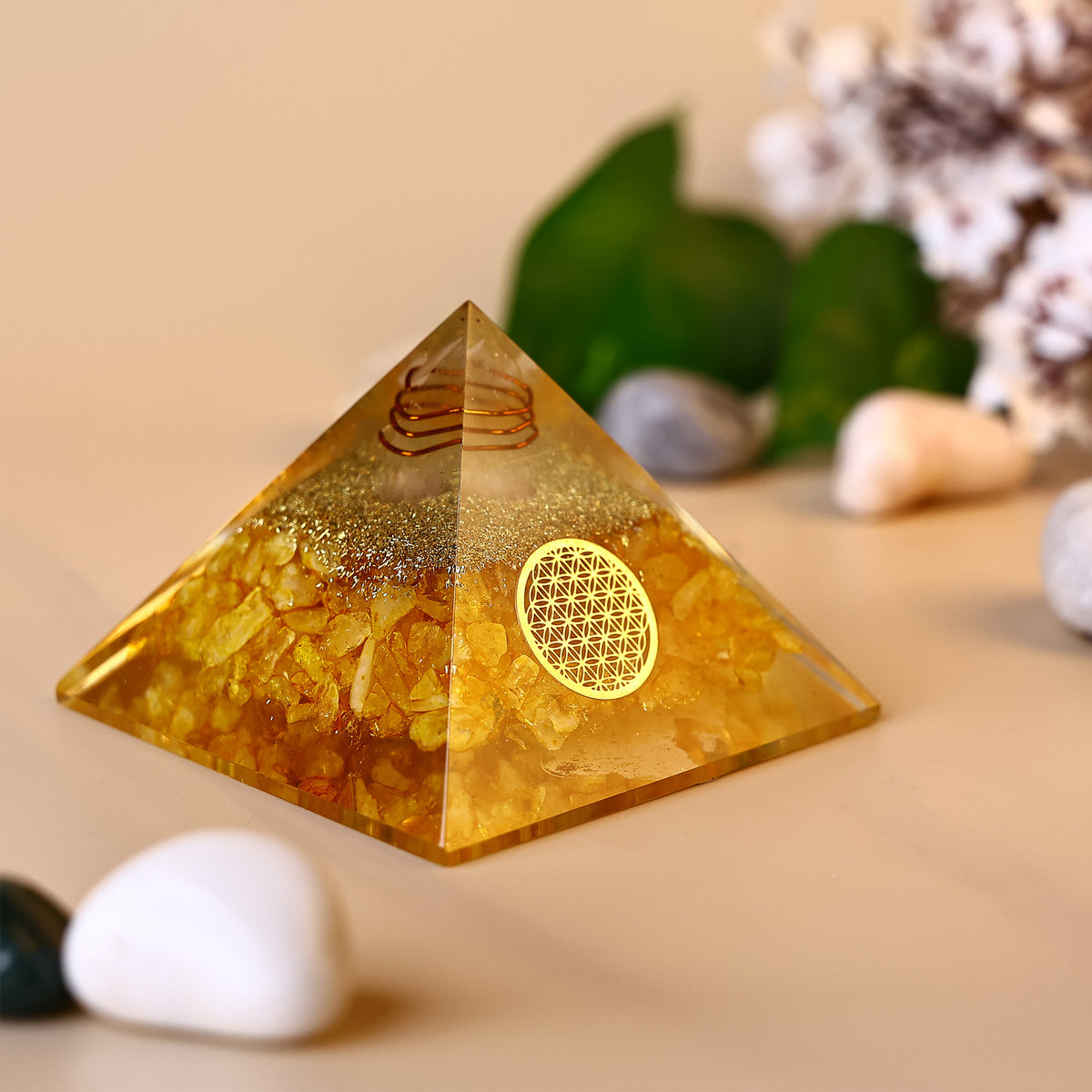Citrine is associated with the energy of the Sun, bringing joy, confidence, and motivation. It helps in removing negativity, improving focus, and enhancing creativity. Keeping this pyramid in your space attracts opportunities, success, and happiness while removing financial obstacles and boosting self-confidence.