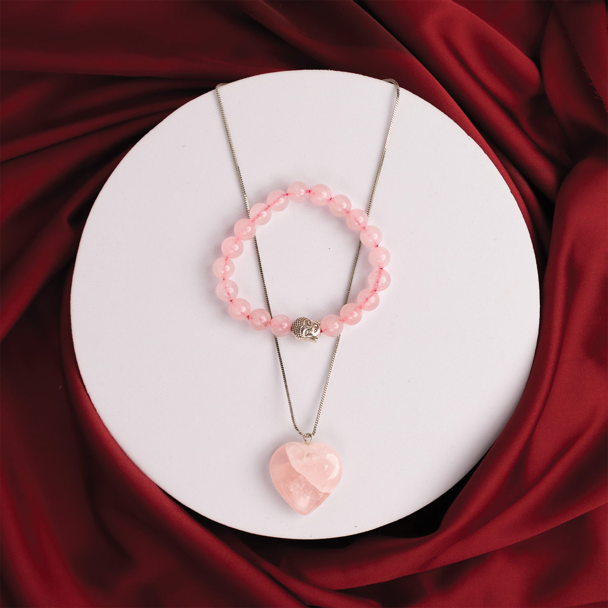 Rose Quartz Bracelet & Pendant Combo - Abhimantirt & Certified