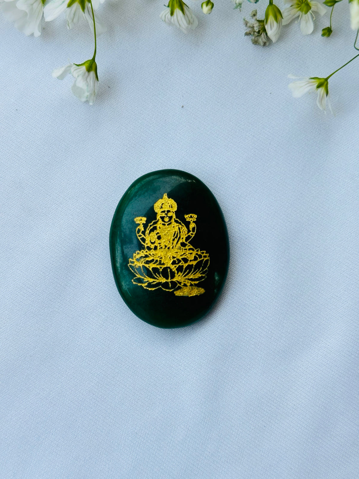 Green Jade Maha Laxmi Coin With Shriyantra - Abhimantrit