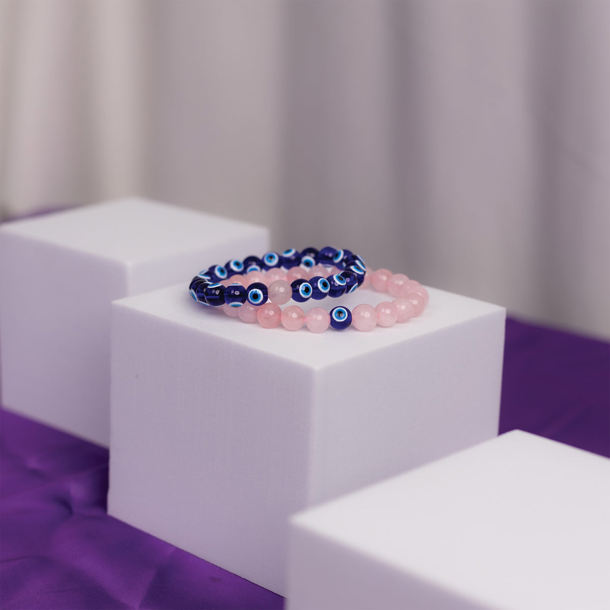 Rose Quartz and Evil Eye Bracelet Combo - Abhimantrit & Certified
