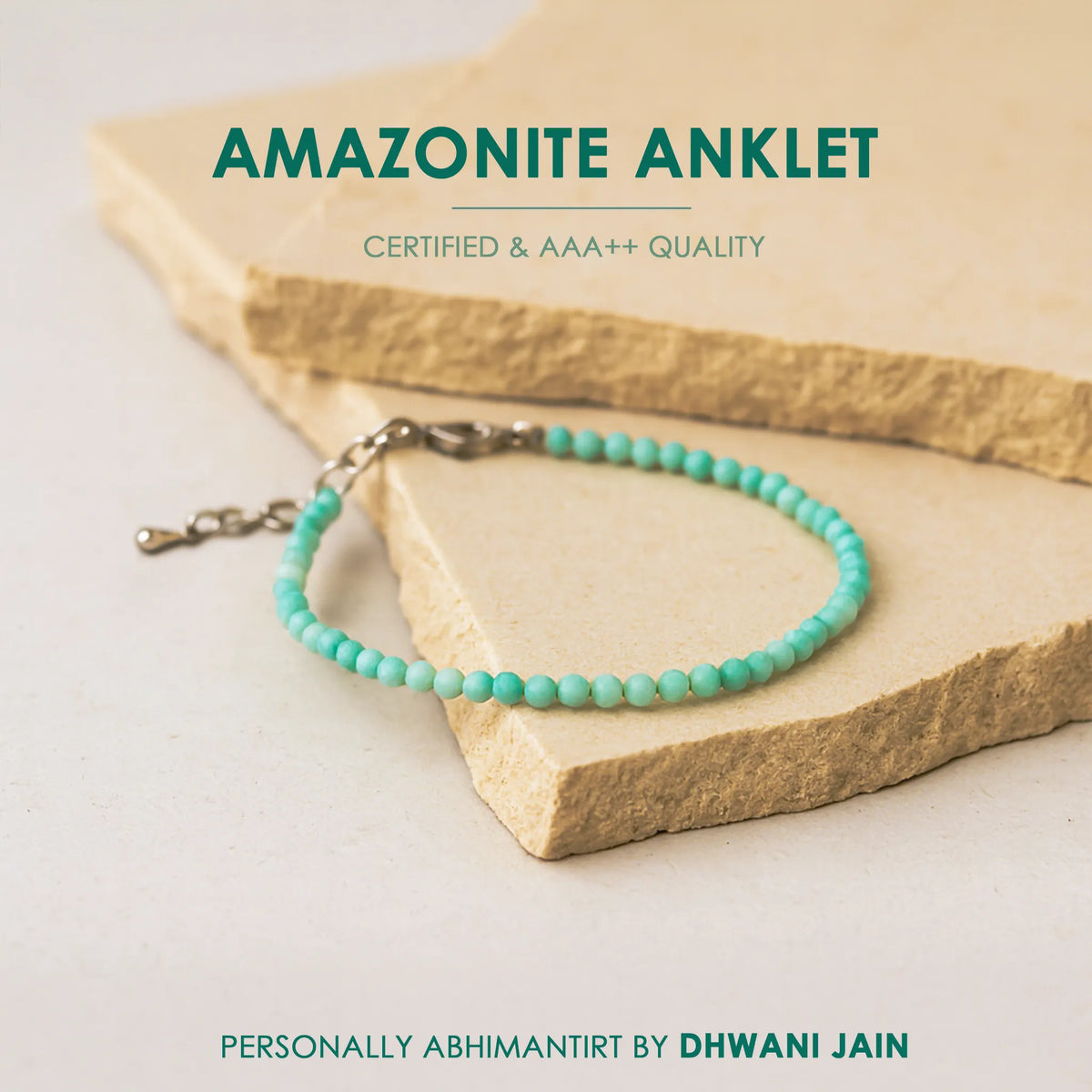 This Amazonite Diamond Cut Anklet is made from a powerful healing stone known for giving peace, clarity, and strength. Amazonite helps remove stress, fear, and confusion from the mind. It supports calm thinking, improves focus, and helps you speak clearly and truthfully.