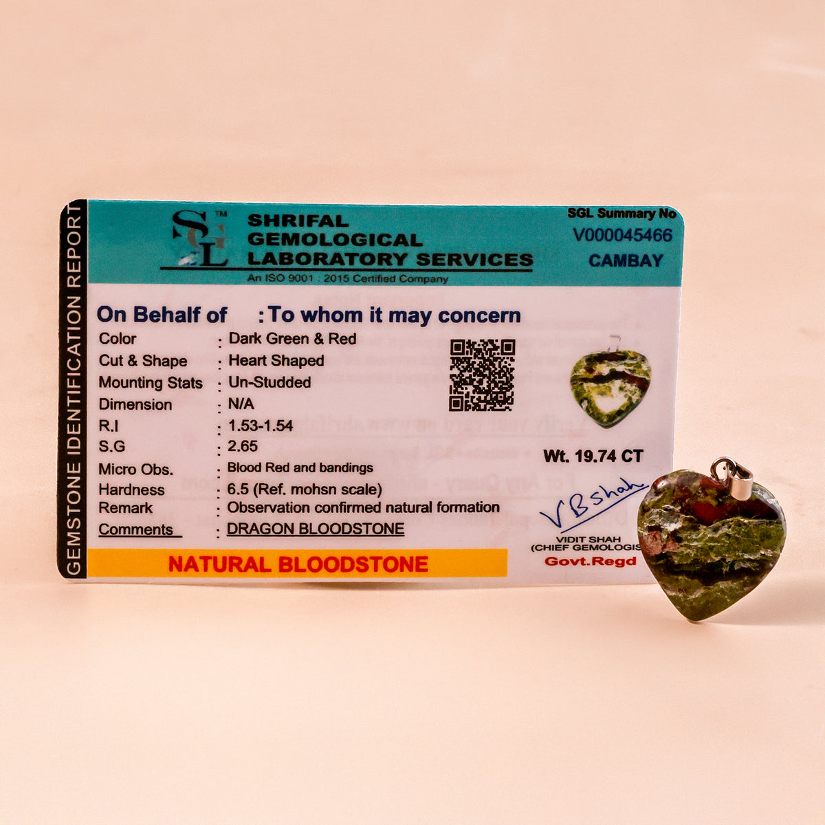 Blood Stone Heart Pandent - Abhimantrit & Certified
