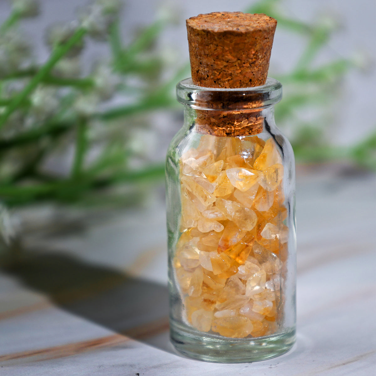 These Citrine Bottle Chips are full of money energy, confidence, and happiness. Citrine is called the “stone of success” because it helps attract wealth, improve mood, and bring positive changes. Keeping this bottle near you supports your career, business, and personal goals.