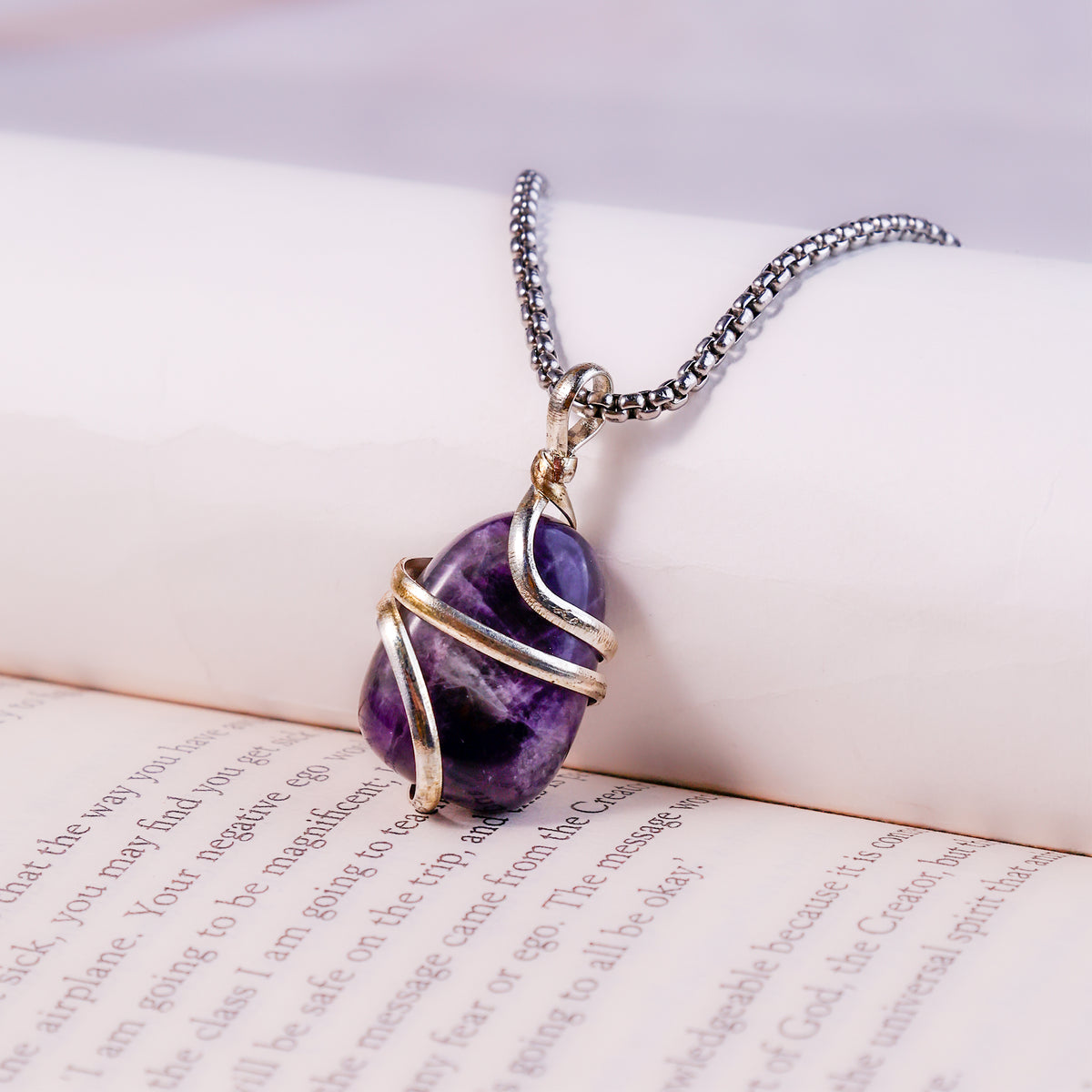 This Amethyst Wrapping Pendant, made from Amethyst crystal, a peace, wisdom and spiritual awakening stone. Known as the "Stone of Tranquility," Amethyst soothes the mind, vanishes stress and cleanses mental clarity.