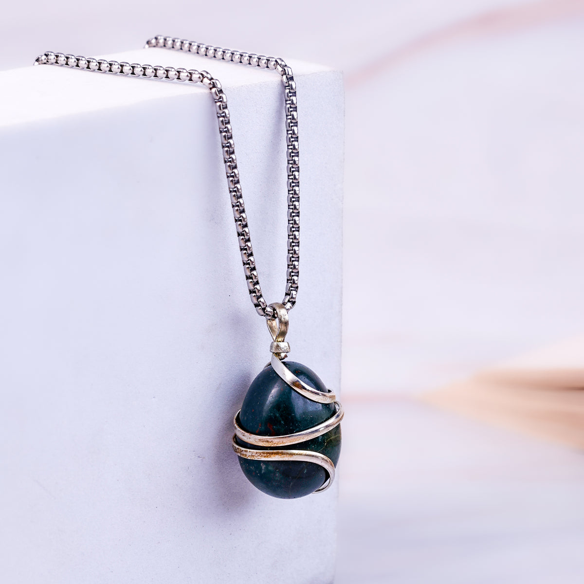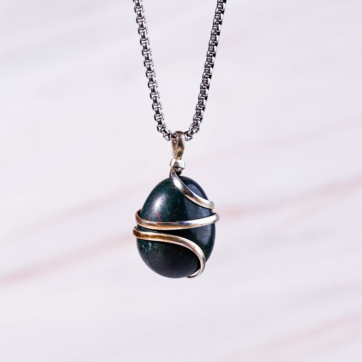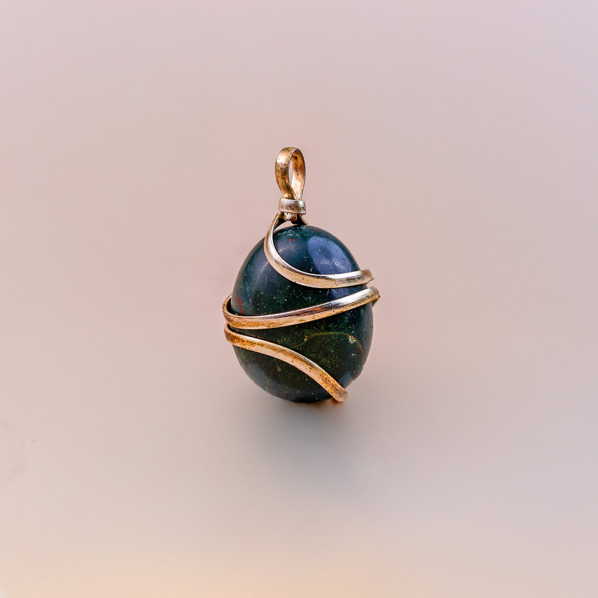 This Bloodstone crystal Wrapping Pendant is made from Bloodstone crystal. Bloodstone is also known as a stone of protection, courage and vitality. Bloodstone promotes physical energy, increases will power and balances mind and body.