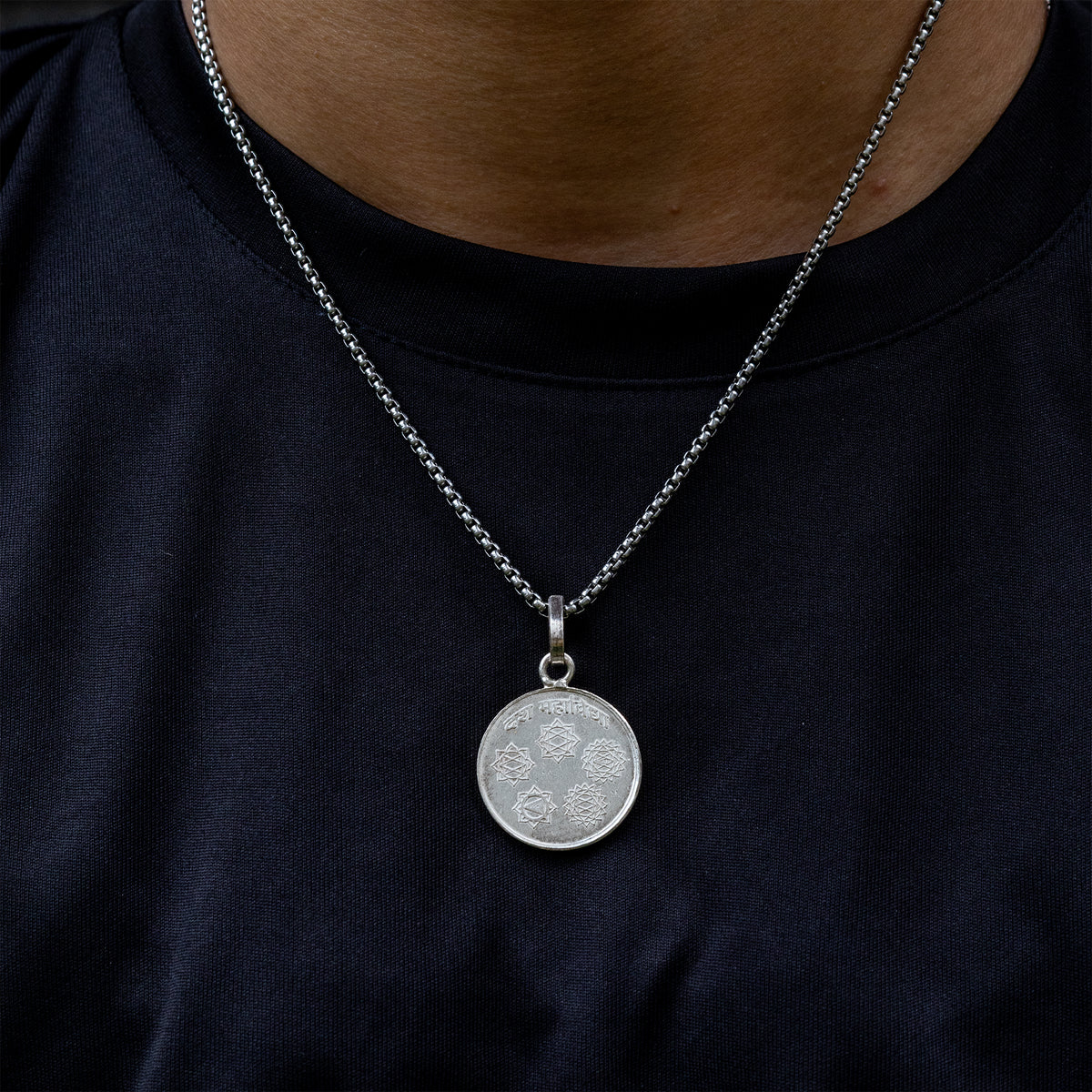 This pendant is energized (Abhimantrit) with Vedic mantras by expert pandits and personalized with your Name and Gotra so that its vibrations instantly resonate with your aura. Crafted in pure silver, it additionally provides purity, prosperity and divine association.