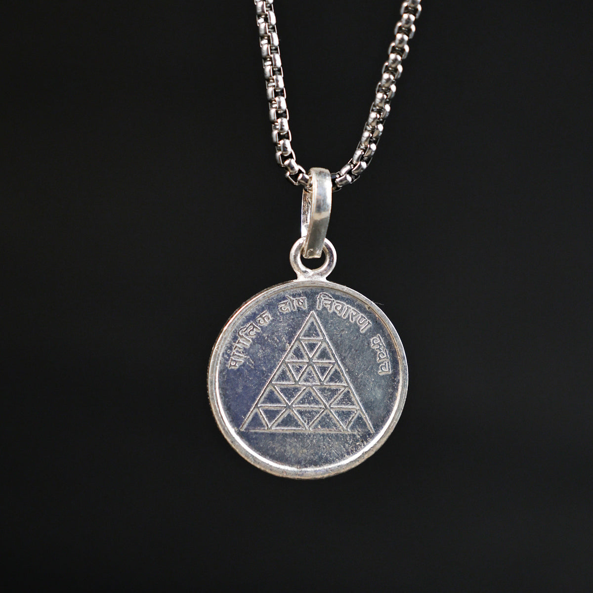 Manglik Dost Nivaran Yantra Pendant is made of pure silver and is specially designed to reduce the effects of Manglik Dosha. It helps bring peace, happiness, and harmony in your life. This pendant is perfect for improving relationships, family life, and overall well-being, making your life smoother and more balanced.