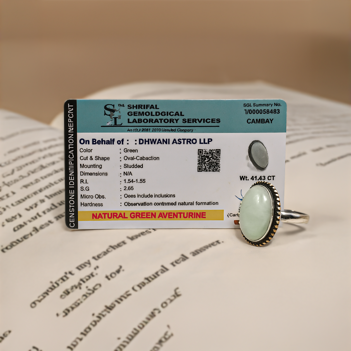This ring is crafted with a natural and certified Green Aventurine gemstone. It helps to bring success, balance emotions, and protect from negativity. It also strengthens Mercury (Budh), the planet of wisdom, communication, and intelligence 📿🔱