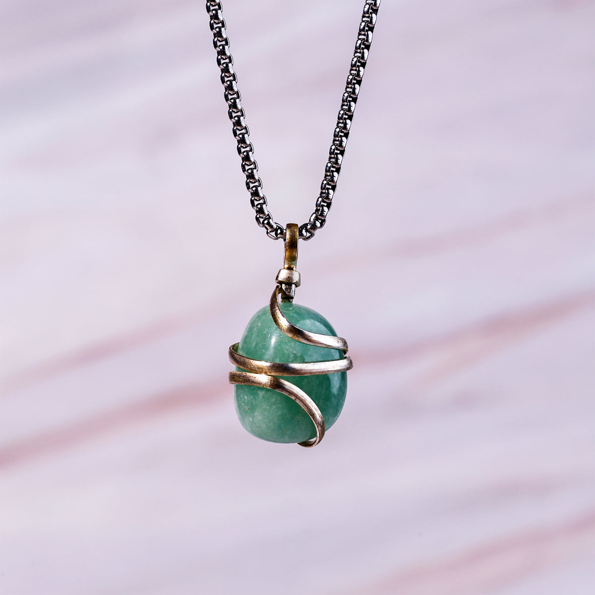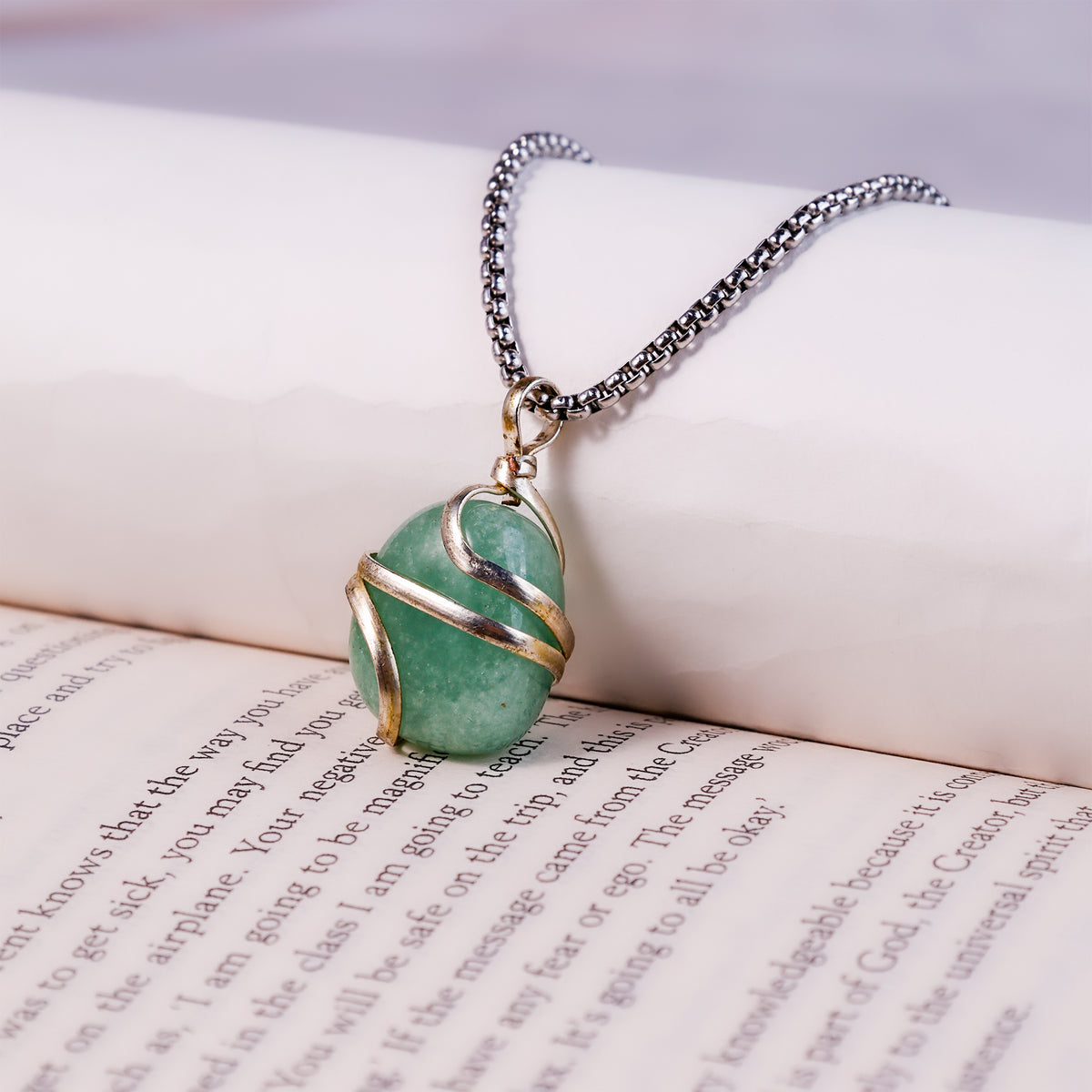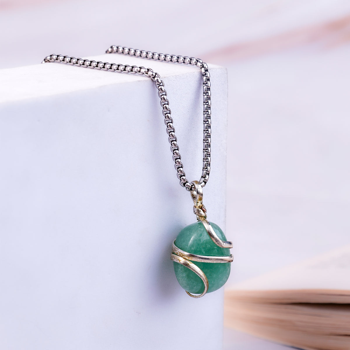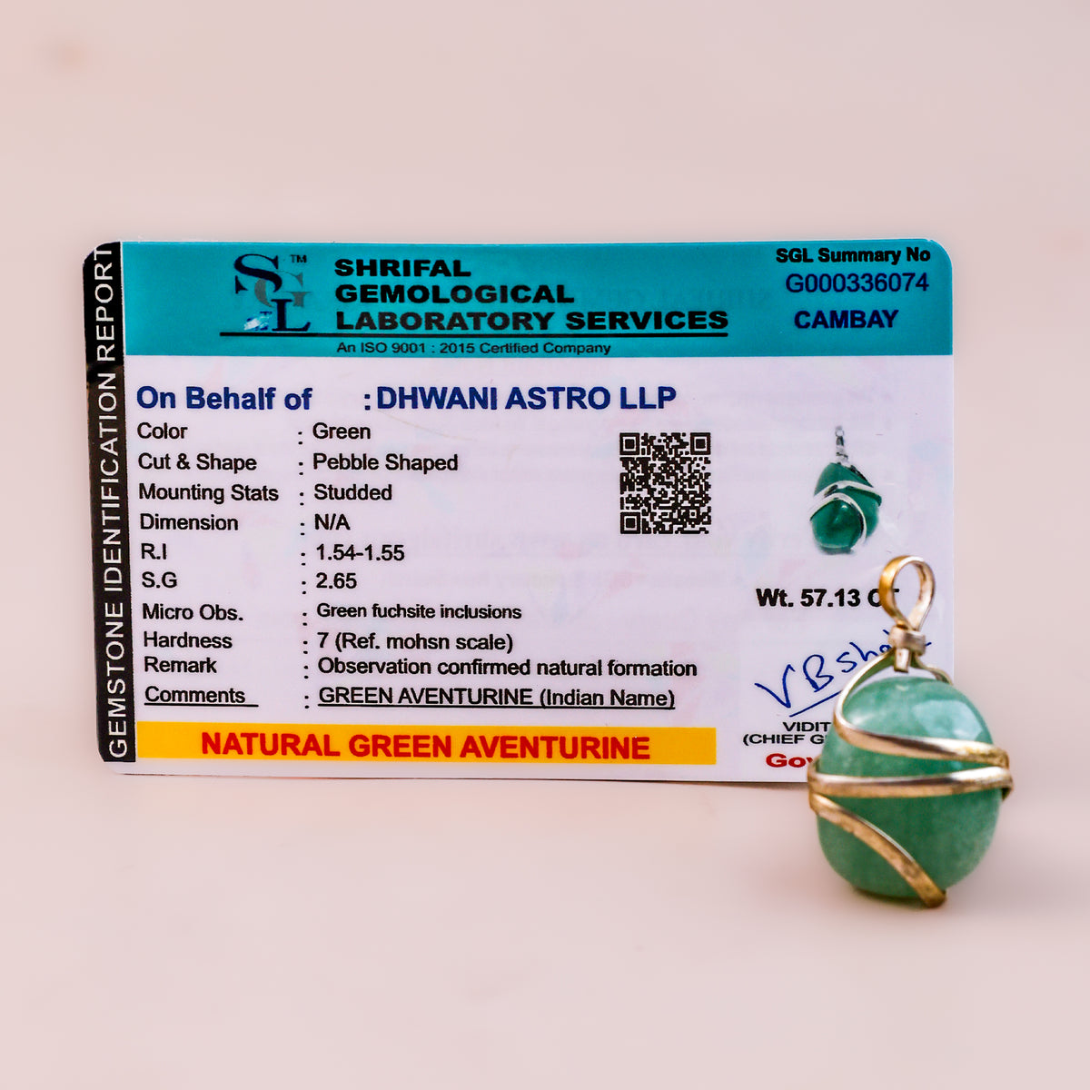 Green Aventurine Wrapping Pendant - Abhimantrit & Certified