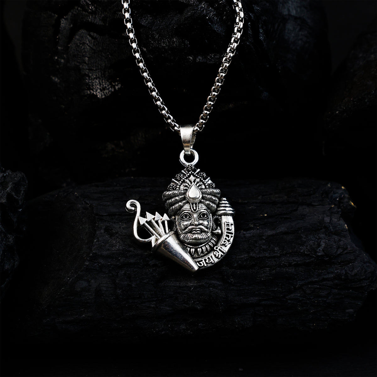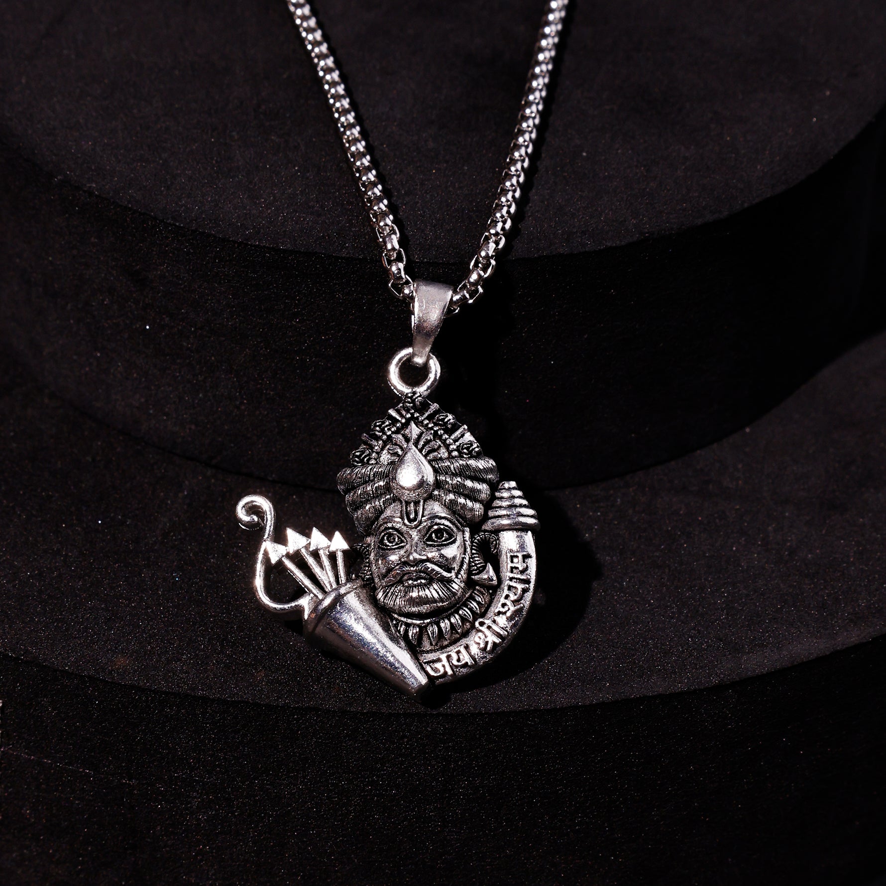 The Khatu Shyam Pendant is a religious symbol of devotion, faith and divine favors. Dedicated to Lord Khatu Shyam Ji or Barbarika, the giver of strength and wish fulfiller, the pendant ensures victory, protection and prosperity for the wearer.