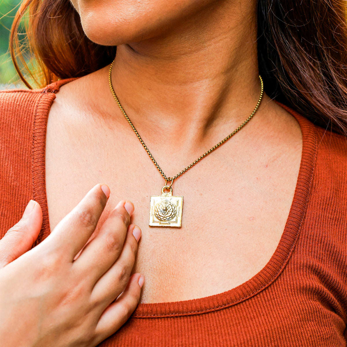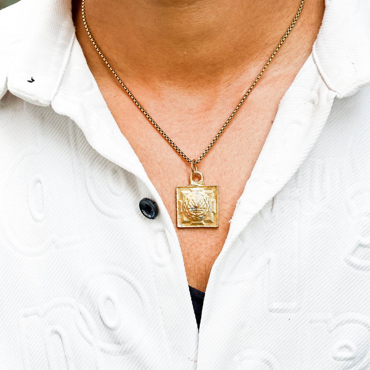 The Shree Yantra balances mind, body, and soul. It removes financial problems, brings growth in business and job, and protects from negativity. Wearing this golden pendant keeps you always connected with divine energy, so that success and prosperity never leave your side.