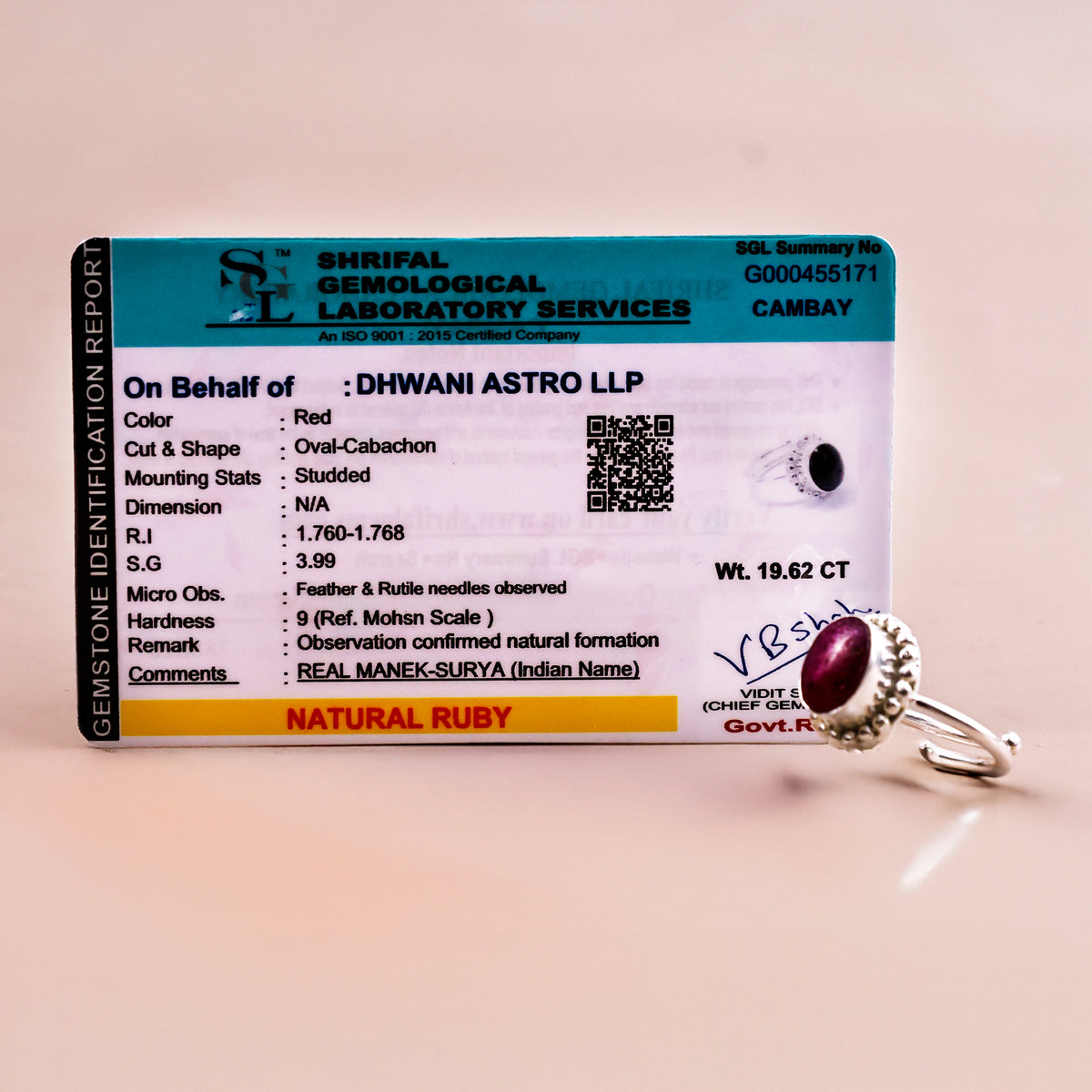We don’t just sell rings – we energize each Ruby Ring with sacred Vedic rituals and provide it with lab certification for authenticity. Each ring is also personalized with your Name and Gotra, so you get true blessings, protection, and real results in life.