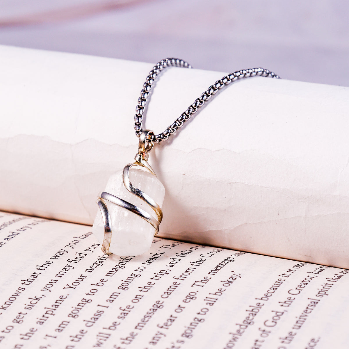 This Selenite Wrapping Pendant is handcrafted from Selenite. Selenite is also referred to as the "Stone of Light" due to the fact that it eliminates negative energies, blockages and enhances decision making. Selenite brings deep peace, mental clarity and feeling of divine protection and is also best for spiritual wanderers and healers.