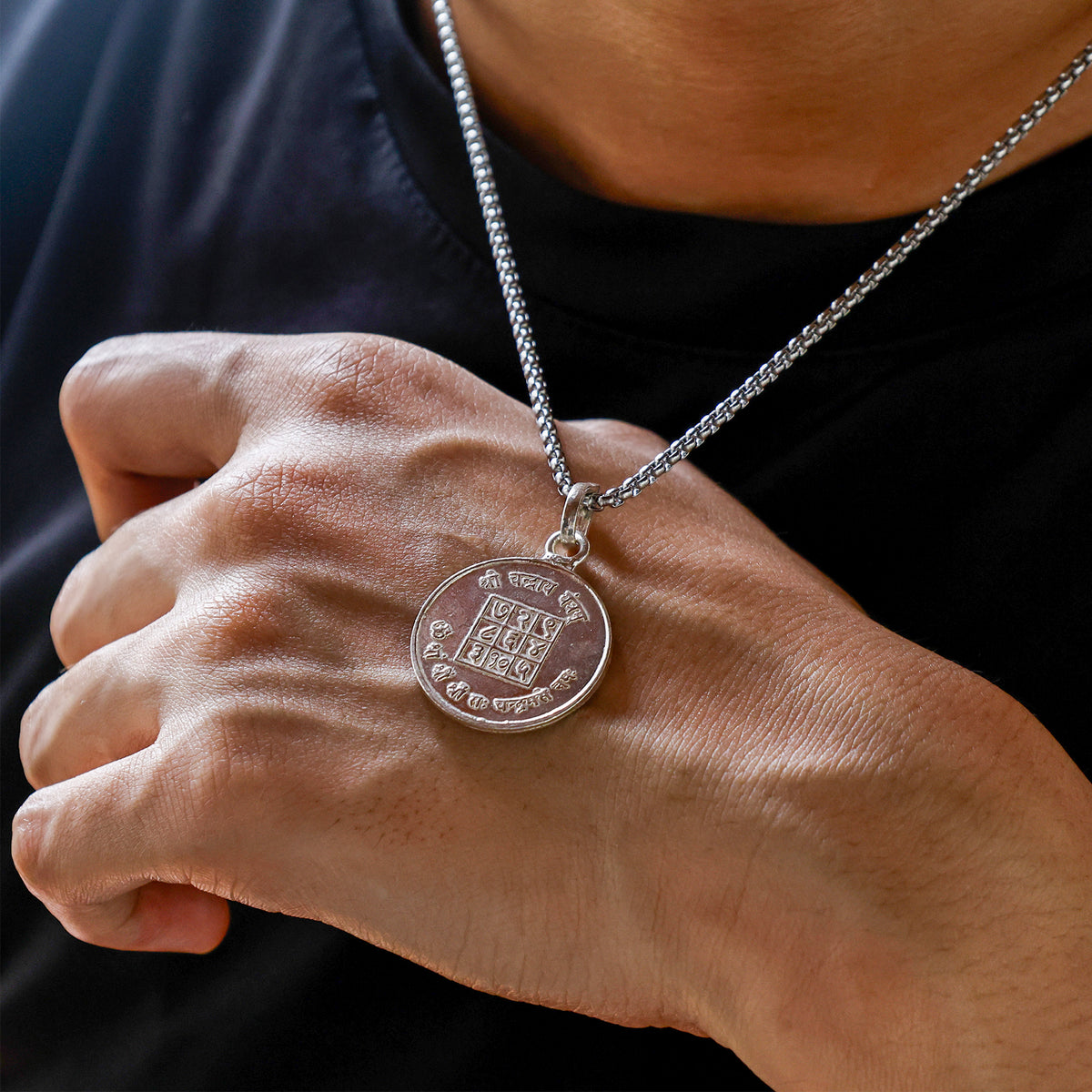 The yantra is Abhimantrit (charged) with strong Vedic mantras by expert pandits and personalized by your Name and Gotra, so that its energy synchronizes with your spiritual vibrations. Made of pure silver, it emits purity, auspiciousness and divine blessings.