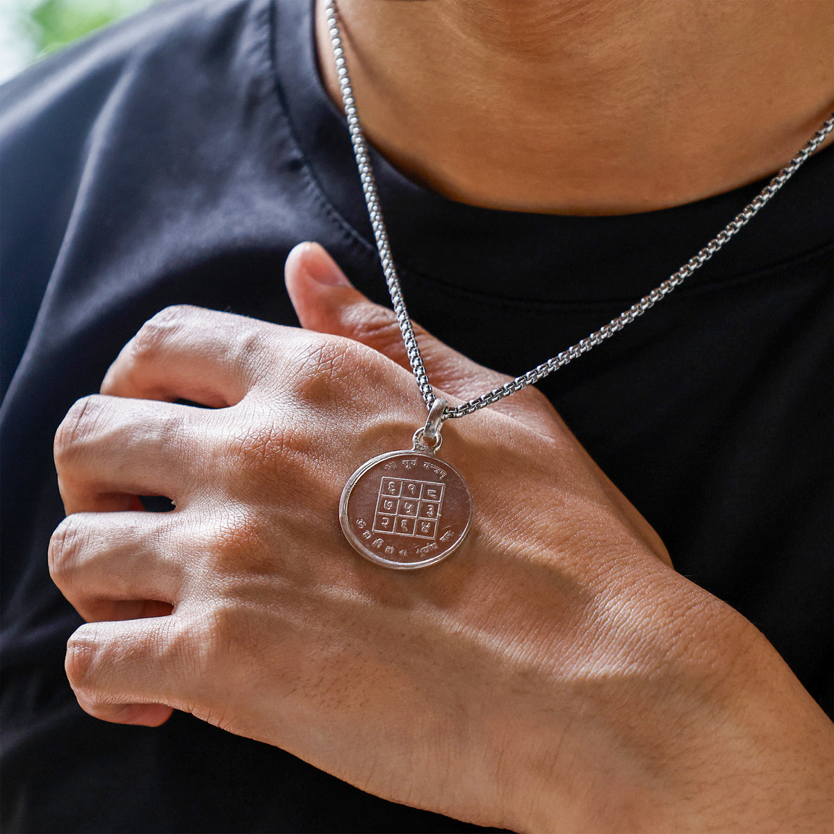The yantra is Abhimantrit (charged) with sacred Vedic mantras by expert pandits and personalized with your Name and Gotra, so that its vibrations match your spiritual frequency. In pure silver, it emits positivity and divine power.