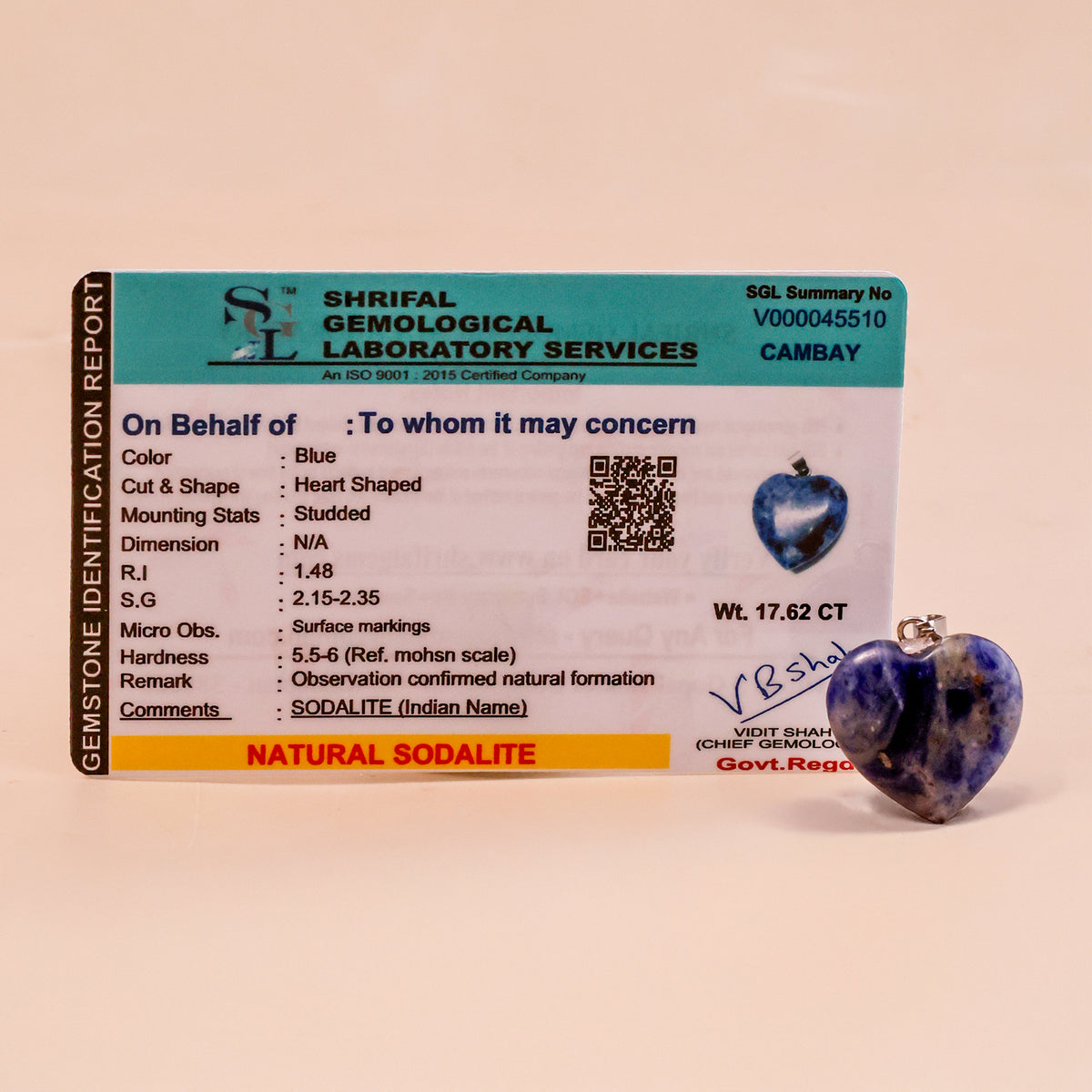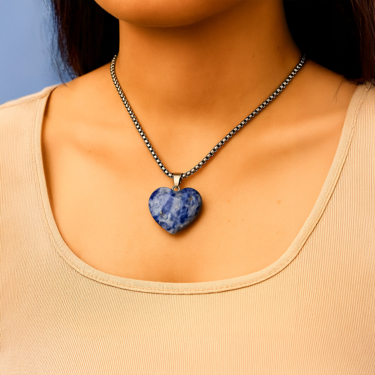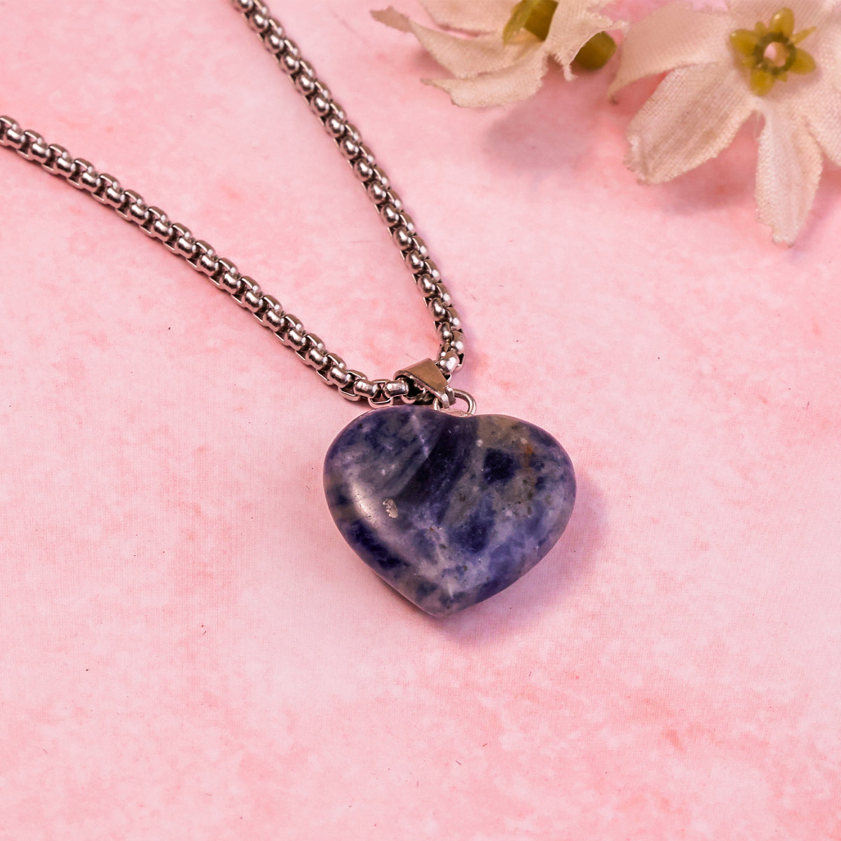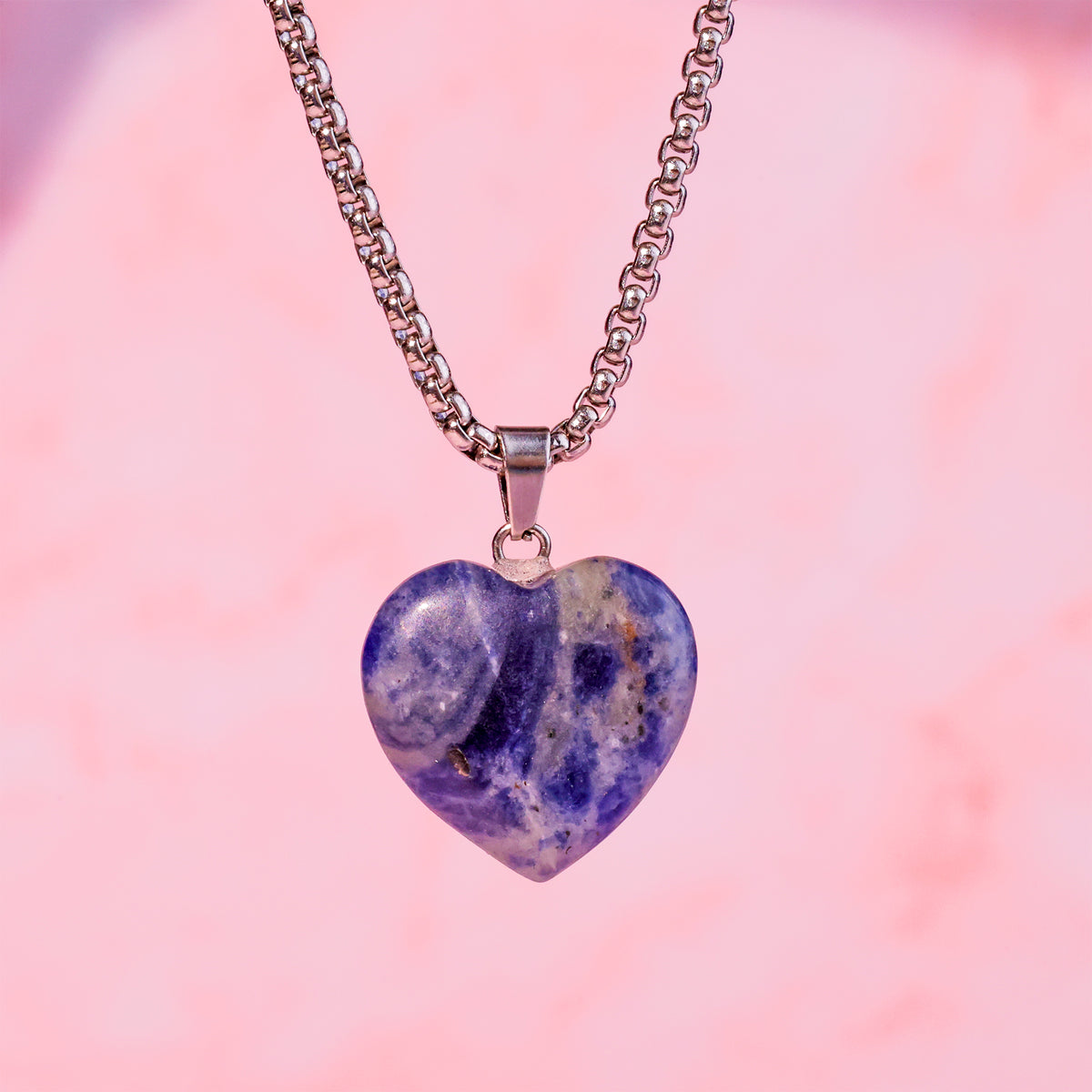 This Sodalite Heart Pendant is made of Sodalite, also called the "Stone of Truth and Clarity." It improves intuition, profound thought, self-expression, intellectual calm and emotional equilibrium. Sodalite is found to be especially helpful in clarifying communication, self-worth and spiritual consciousness.