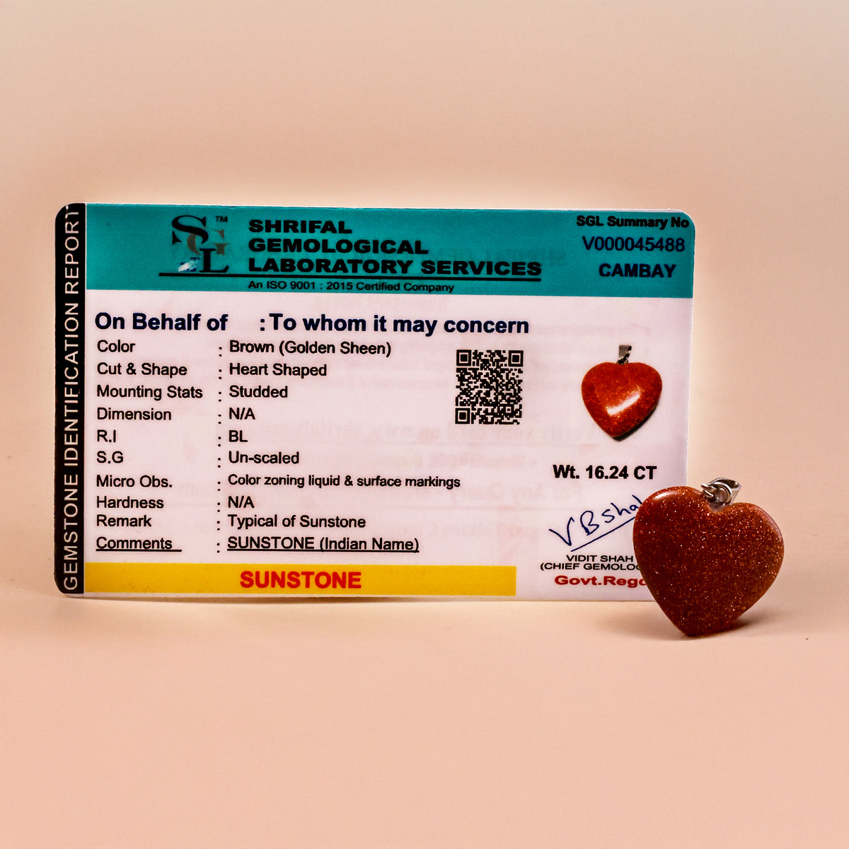 Sunstone Heart Pendant - Abhimantrit & Certified