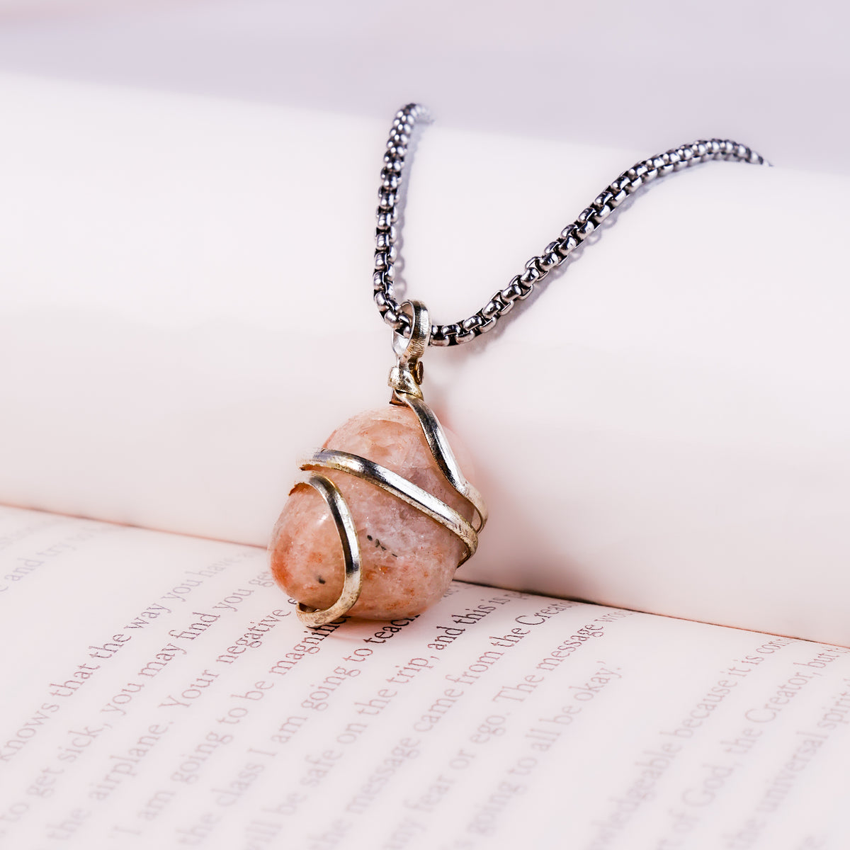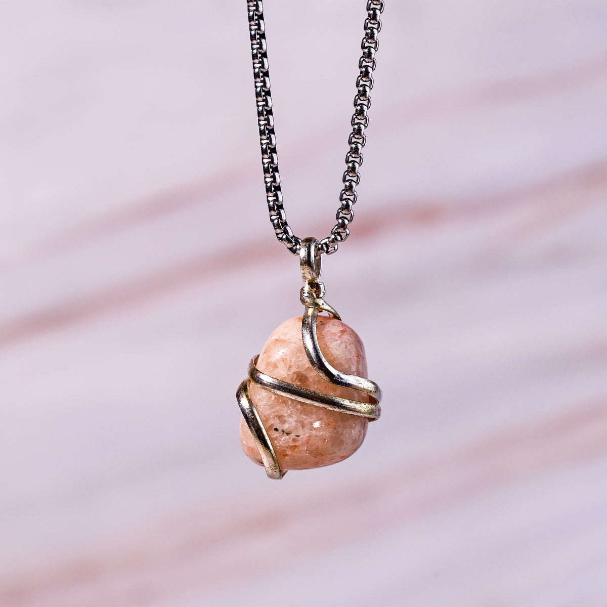 This Sunstone Wrapping Pendant is crafted from Sunstone, known as the Stone of Joy and Vitality. It emits warmth, assurance and hope, encouraging you to welcome positivity and accomplishment into your life. The beautiful wrapping is spiritual as well as a fashionable accessory.