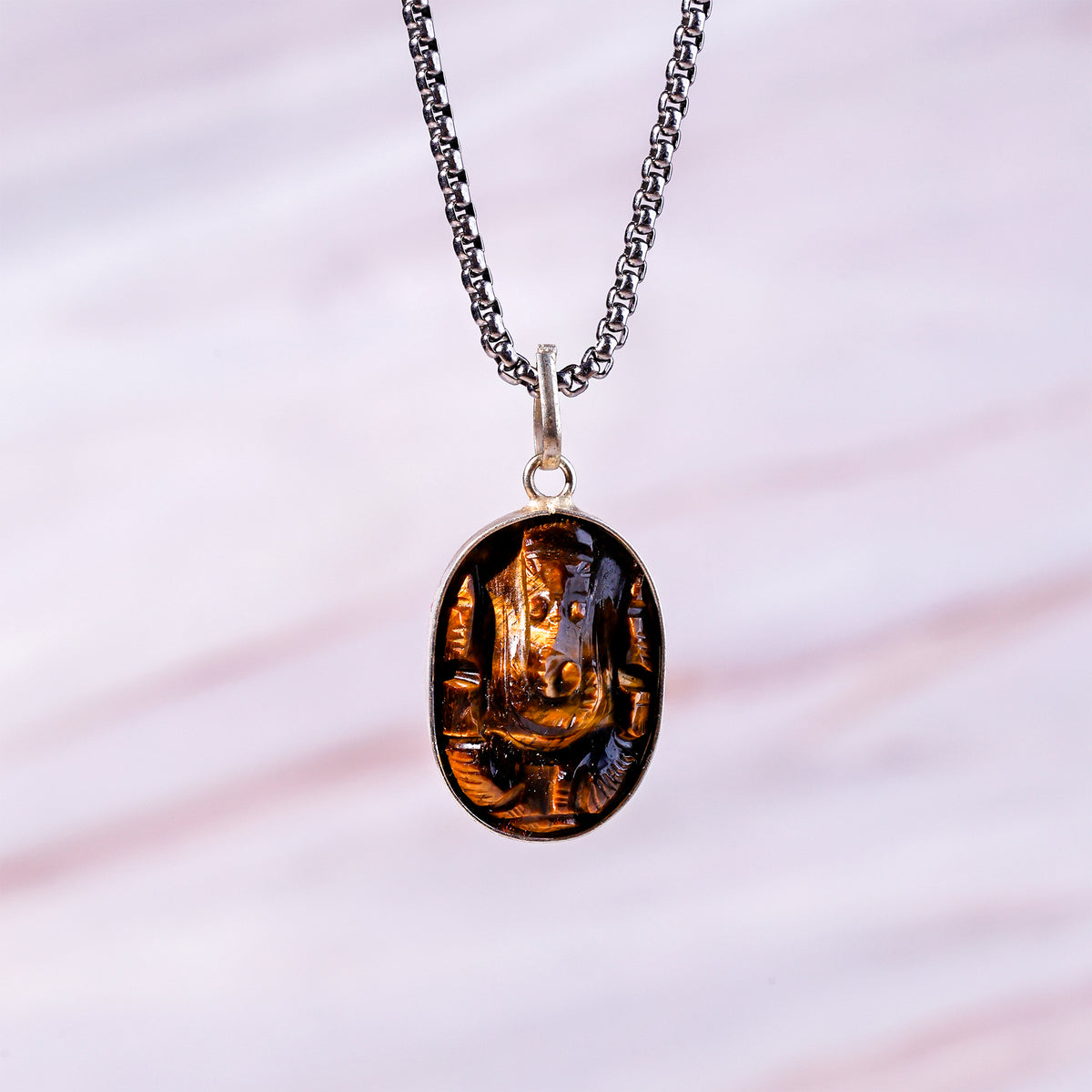 Tiger Eye Ganesh Pendant - Abhimantrit