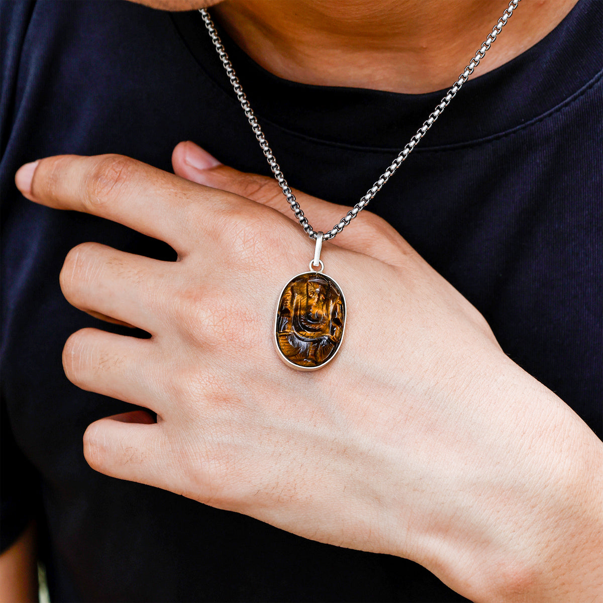 Tiger Eye stone is known to improve focus, decision-making, and willpower. It protects from negativity, evil eye, and fear. With Lord Ganesha’s blessings, this pendant helps you face challenges bravely, achieve goals, and attract wealth and happiness 🌿🌟.