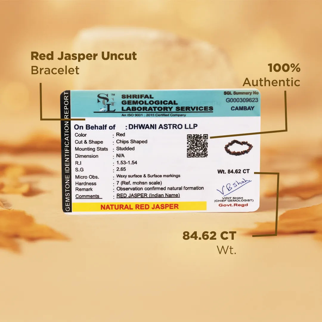 The Red Jasper Uncut Bracelet - Abhimantrit & Certified brings strength, stability, and powerful grounding energy into your life. Red Jasper is known as the stone of courage—it reduces stress, boosts confidence, and keeps your mind calm and steady. The uncut raw crystal gives a strong, earthy vibration that helps you feel safe, focused, and full of energy. ❤️🌿✨