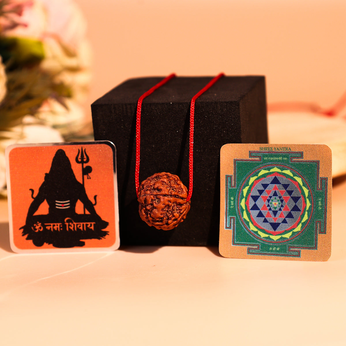 This sacred combo is crafted to make spirituality a part of your daily life – with strength, peace, and purpose. Our Devmani 5 Mukhi Rudraksha alongwith two mobiles stickers ,Combo is not just a spiritual token - it's a powerful shield of positivity, protection, and divine blessings.